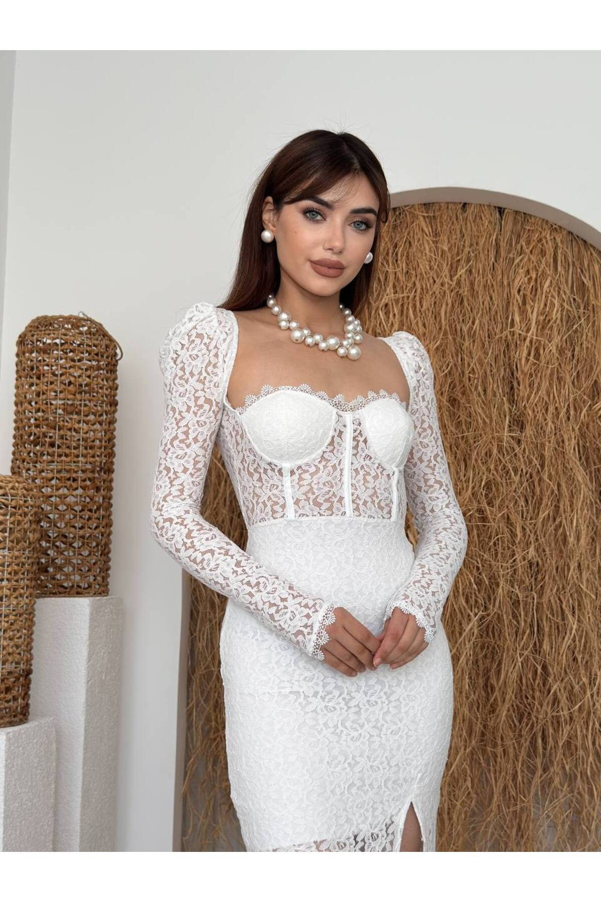 Dantel Tasarım Gloplu İris Midi Elbise Dantel Tasarım Gloplu İris Midi Elbise GUL0067 L