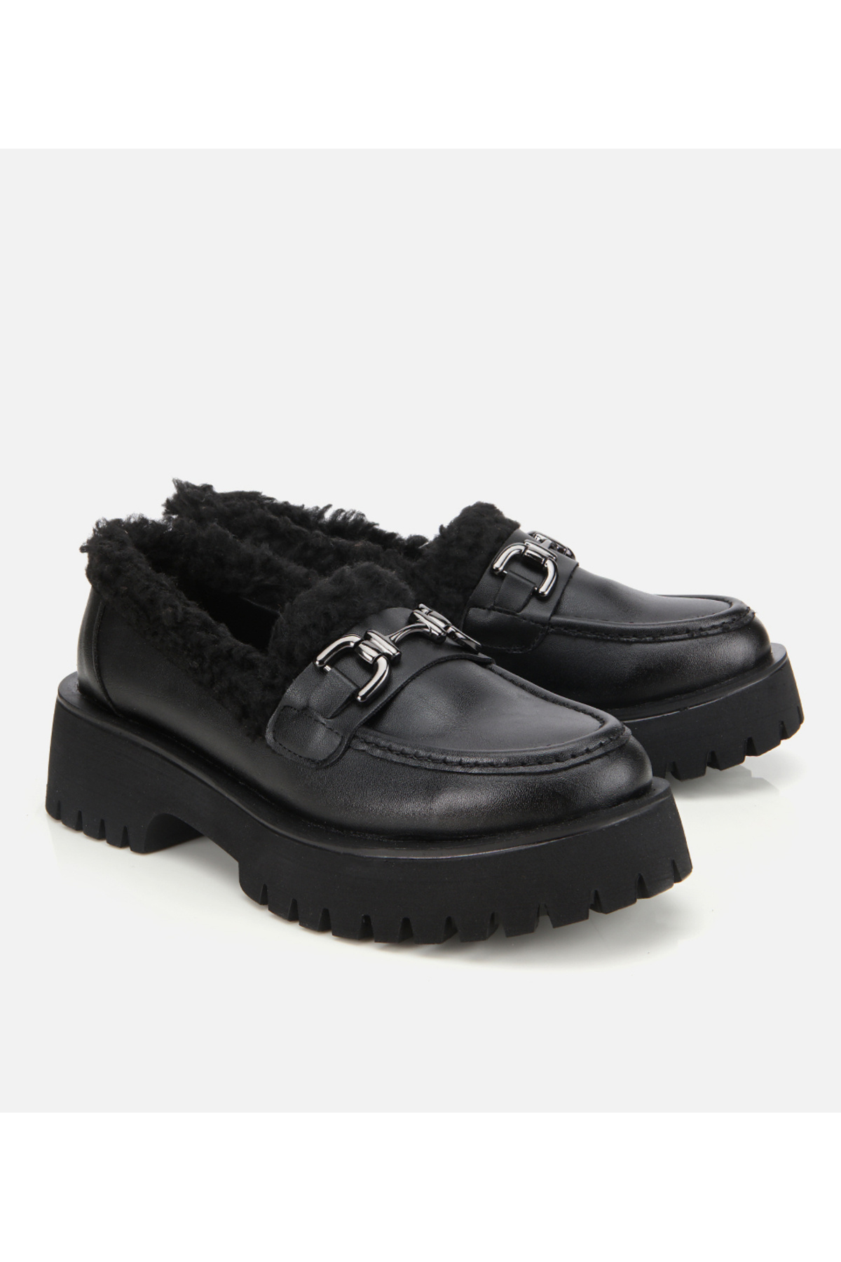 Kadın Siyah Kürklü Tokalı Kalın Tabanlı Günlük Loafer Kadın Siyah Kürklü Tokalı Kalın Tabanlı Günlük Loafer 01AYH314730A 41