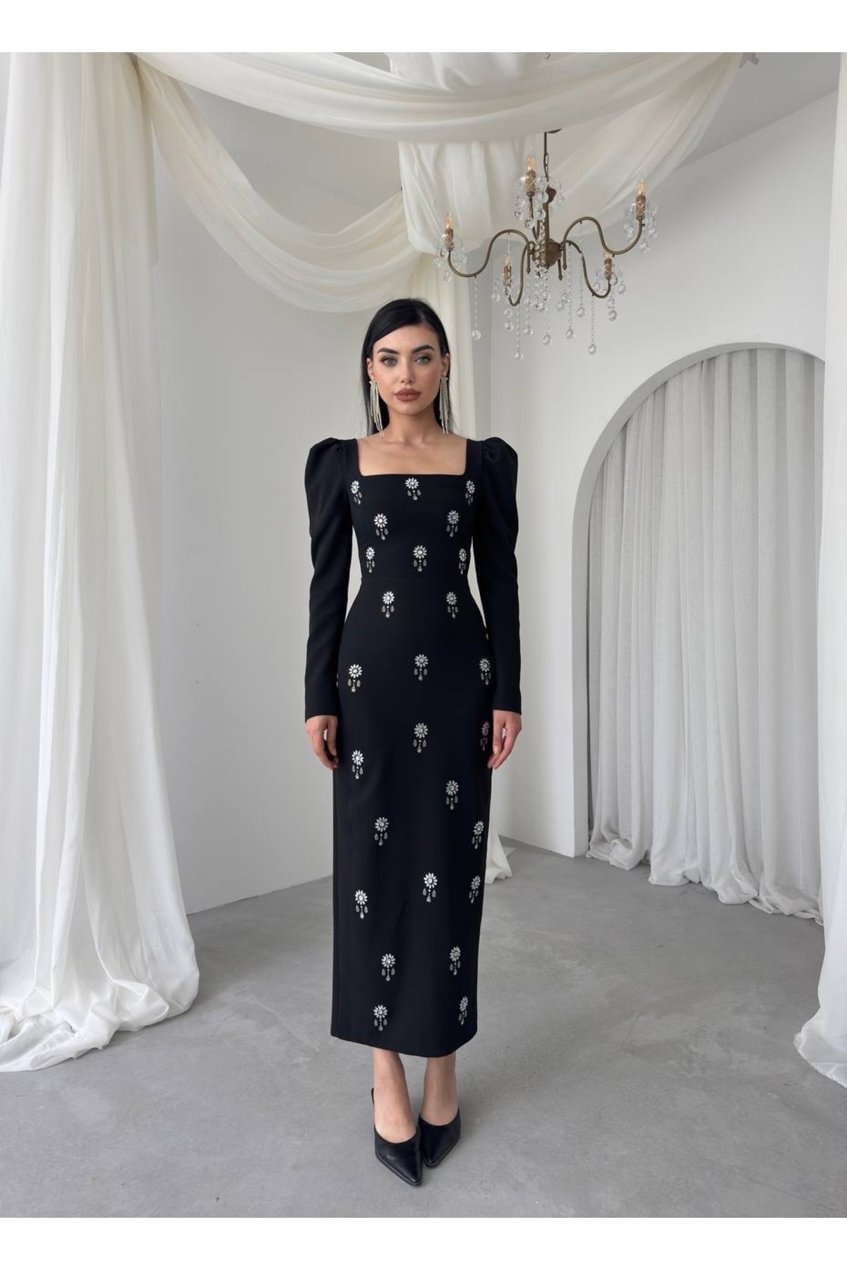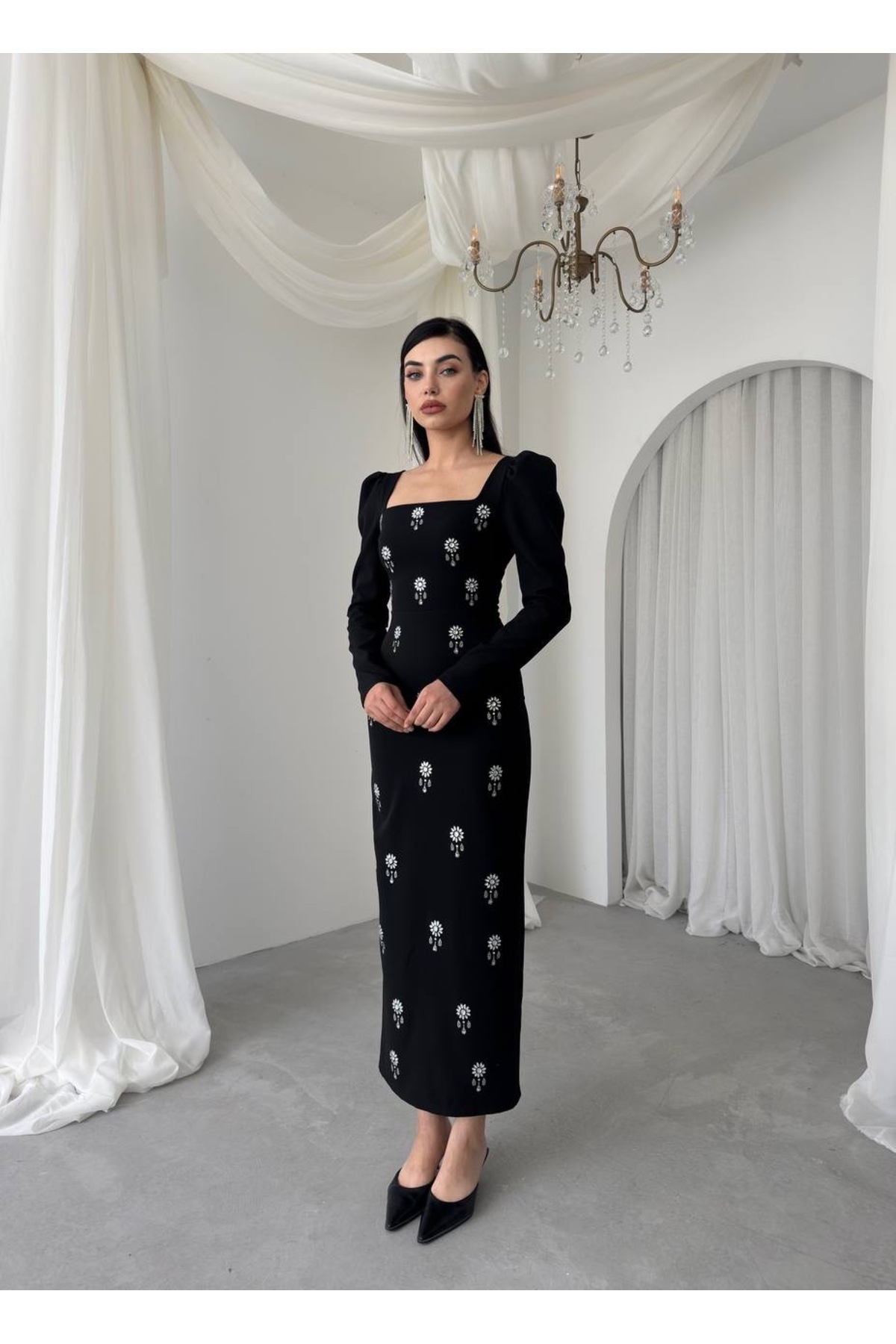Uzun Kol Taşlı Atlas Elbise Uzun Kol Taşlı Atlas Elbise ELFE0080 L