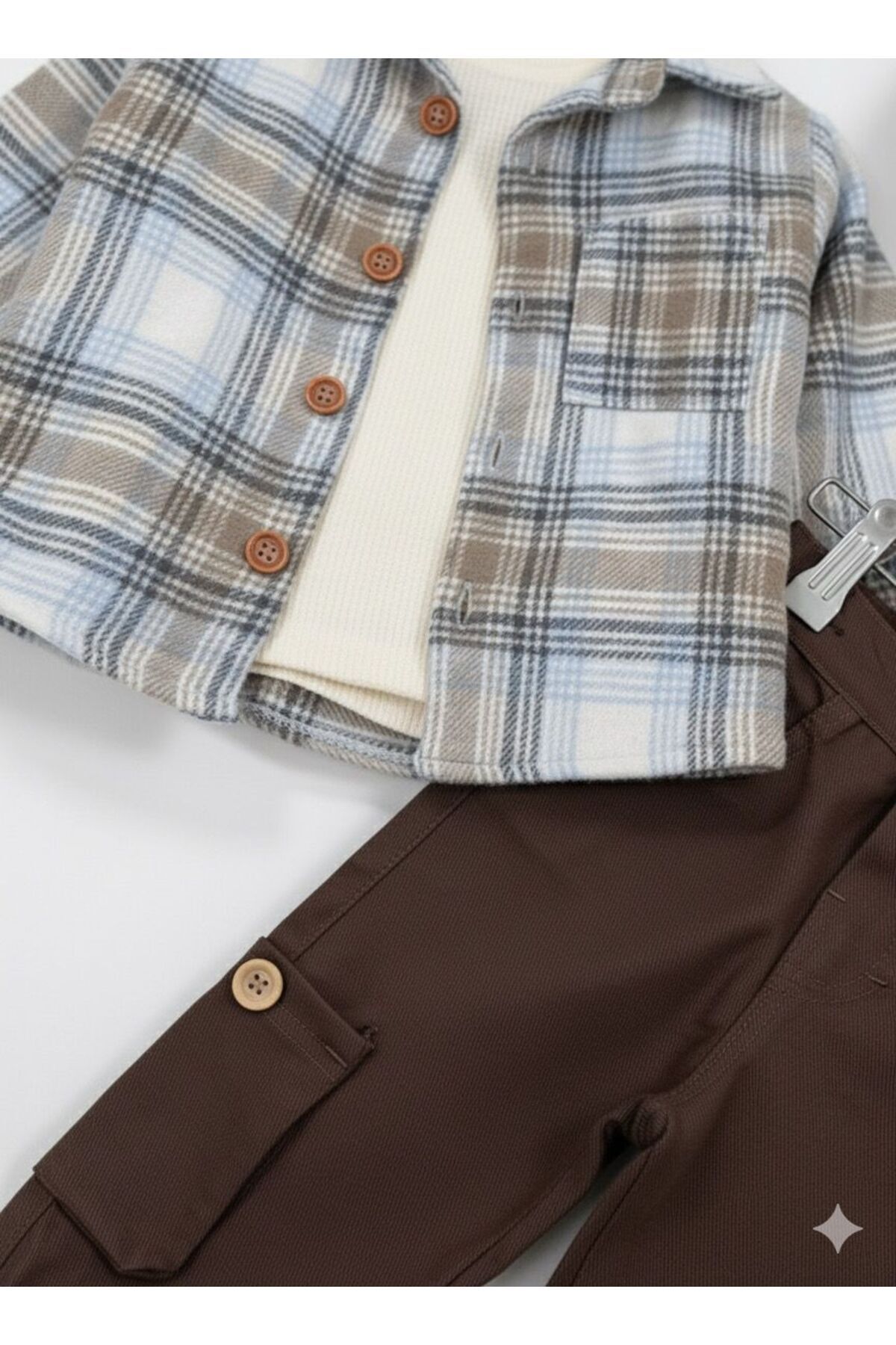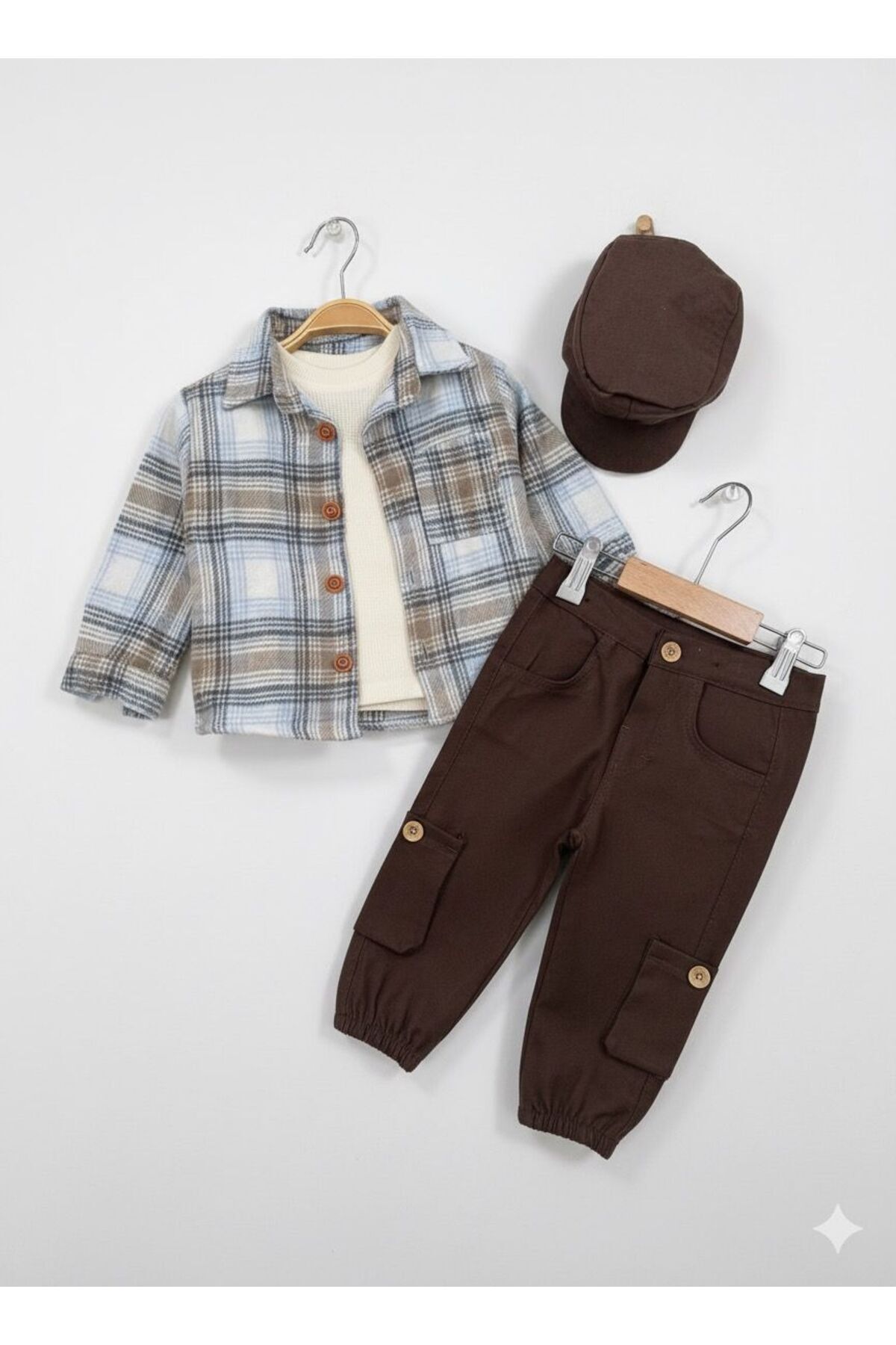 Oduncu Gömlekli Kanvas Pantolonlu 4'Lü Erkek Bebek/Çocuk Takımı Oduncu Gömlekli Kanvas Pantolonlu 4'Lü Erkek Bebek/Çocuk Takımı ph07 24-36 Ay