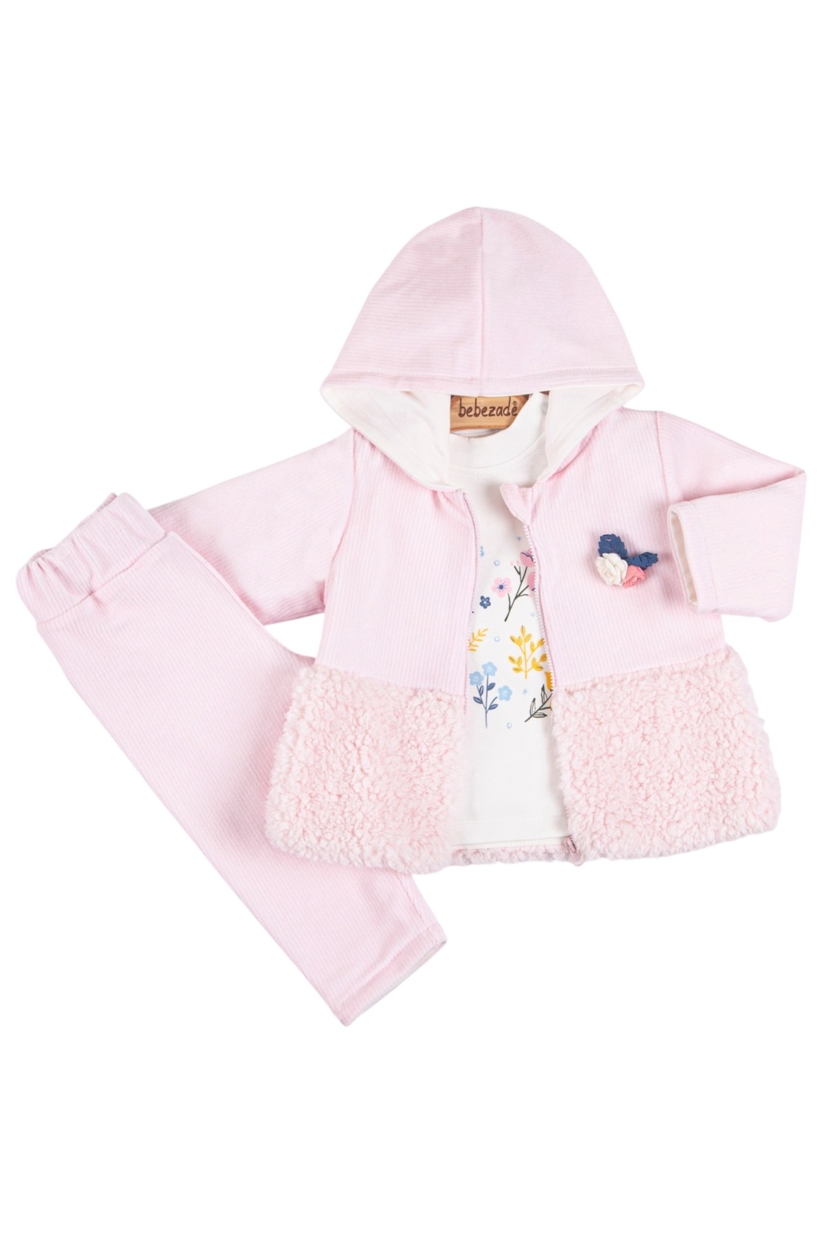 Kadife Üçlü Kız Bebek Takım- Kürk Detaylı Kadife Üçlü Kız Bebek Takım- Kürk Detaylı BAL439735 18-24 AY
