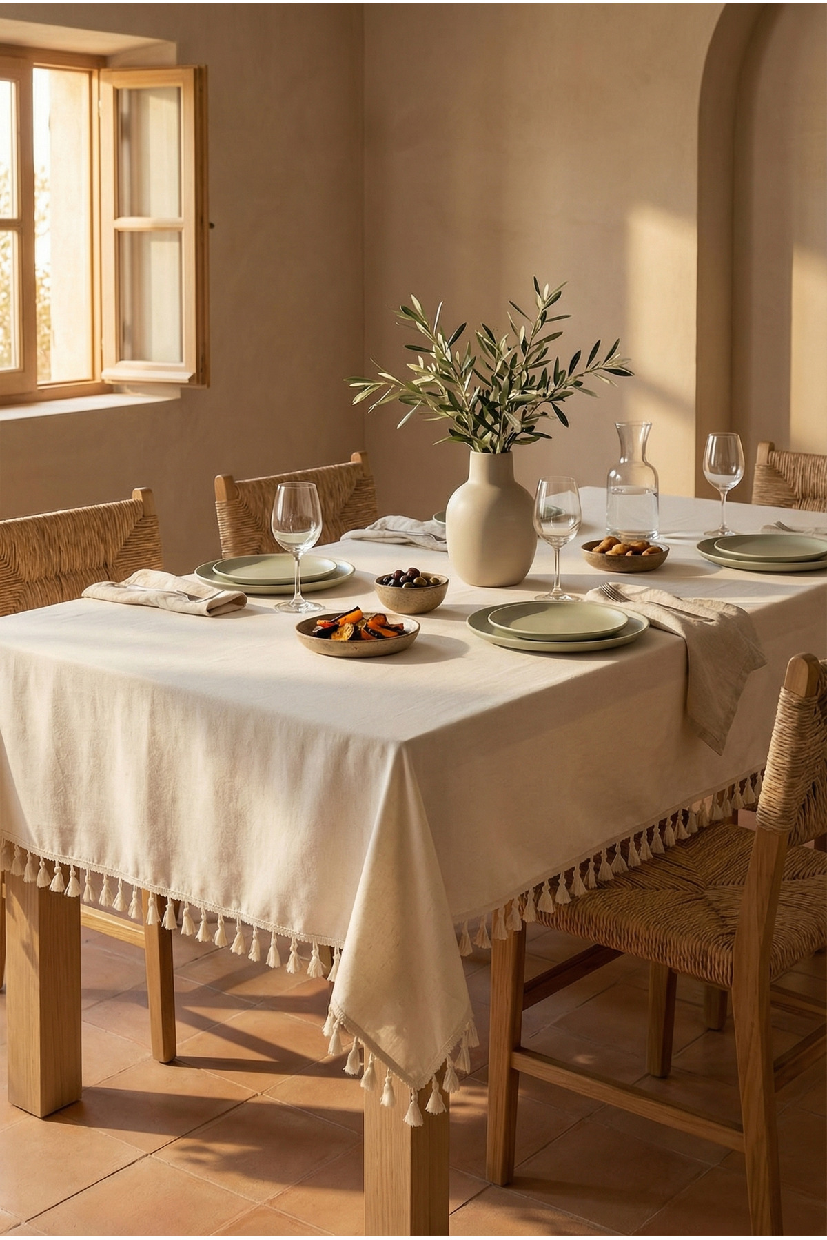 Pamuk Keten Püsküllü Masa Örtüsü Şık Modern Tasarım Pamuk Keten Püsküllü Masa Örtüsü Şık Modern Tasarım otexsamasapuskullu 180 x 220