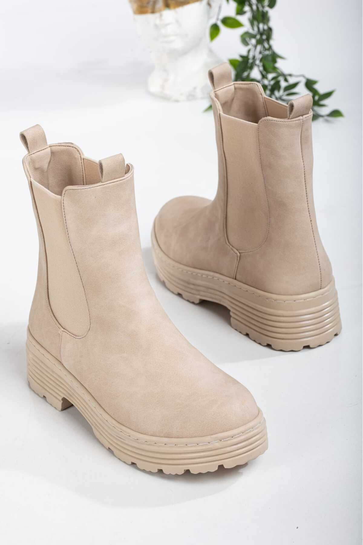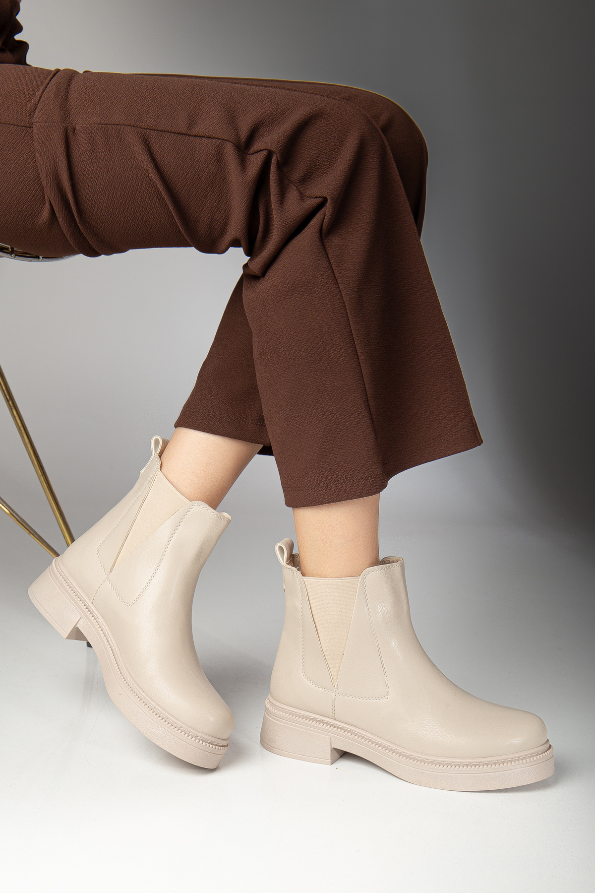 Premium Chelsea Bot Kadın | Kalın Tırtıklı Taban | Lastikli |Bej Deri Günlük Comfort Boot Premium Chelsea Bot Kadın | Kalın Tırtıklı Taban | Lastikli |Bej Deri Günlük Comfort Boot 1600 40