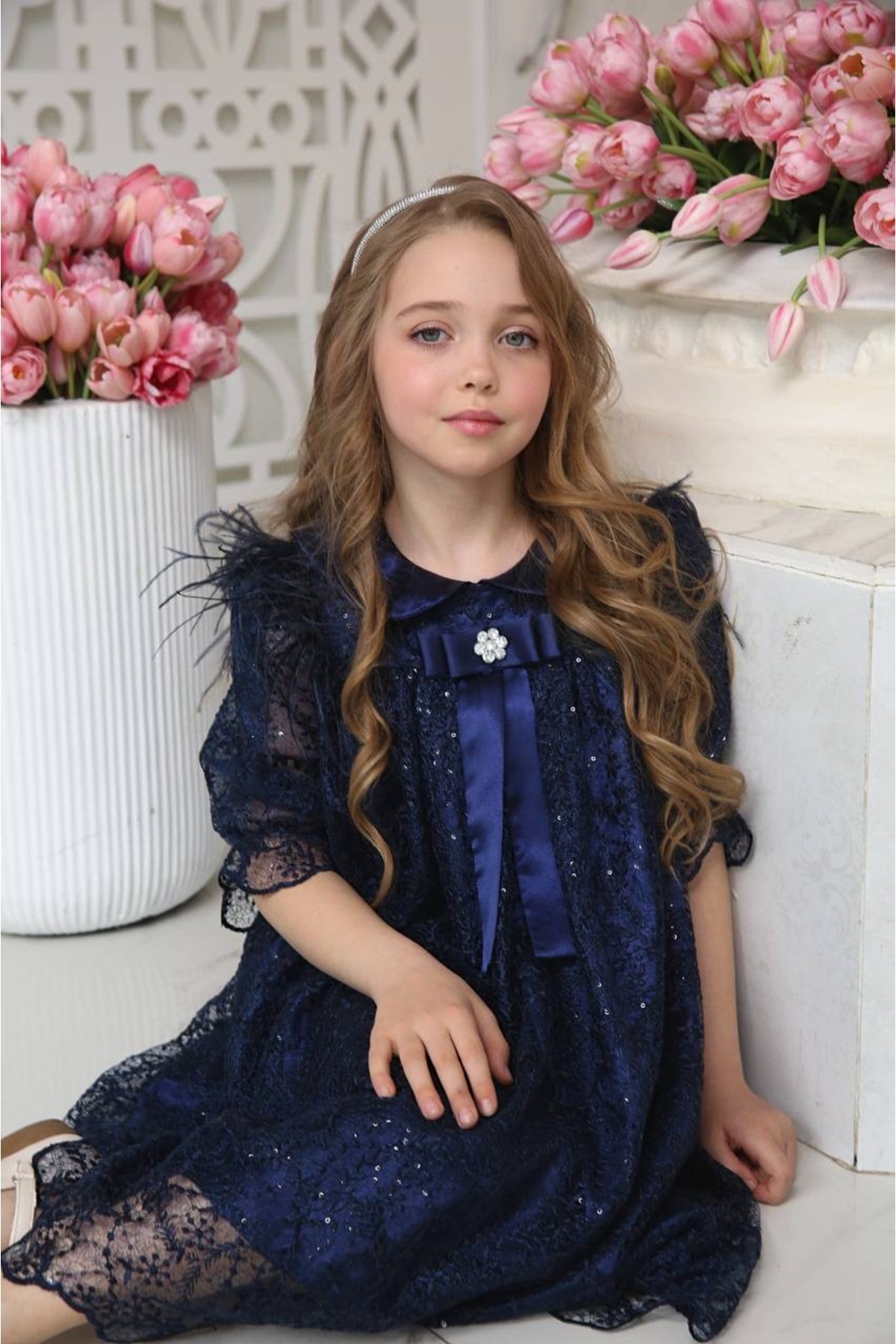 JAKARLI ÖZEL TASARIM ÇOCUK ELBİSE JAKARLI ÖZEL TASARIM ÇOCUK ELBİSE BR0082 7-8 Yaş