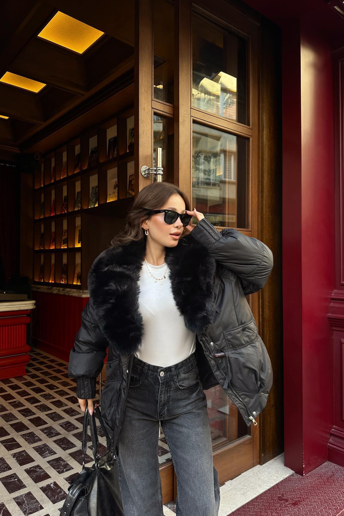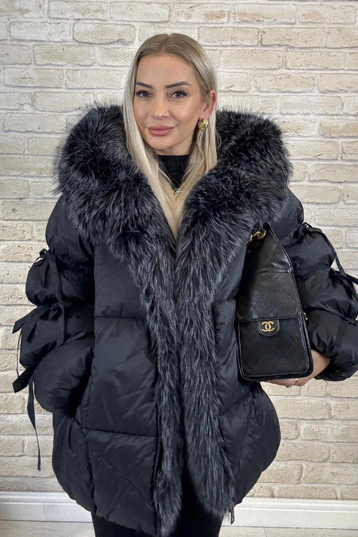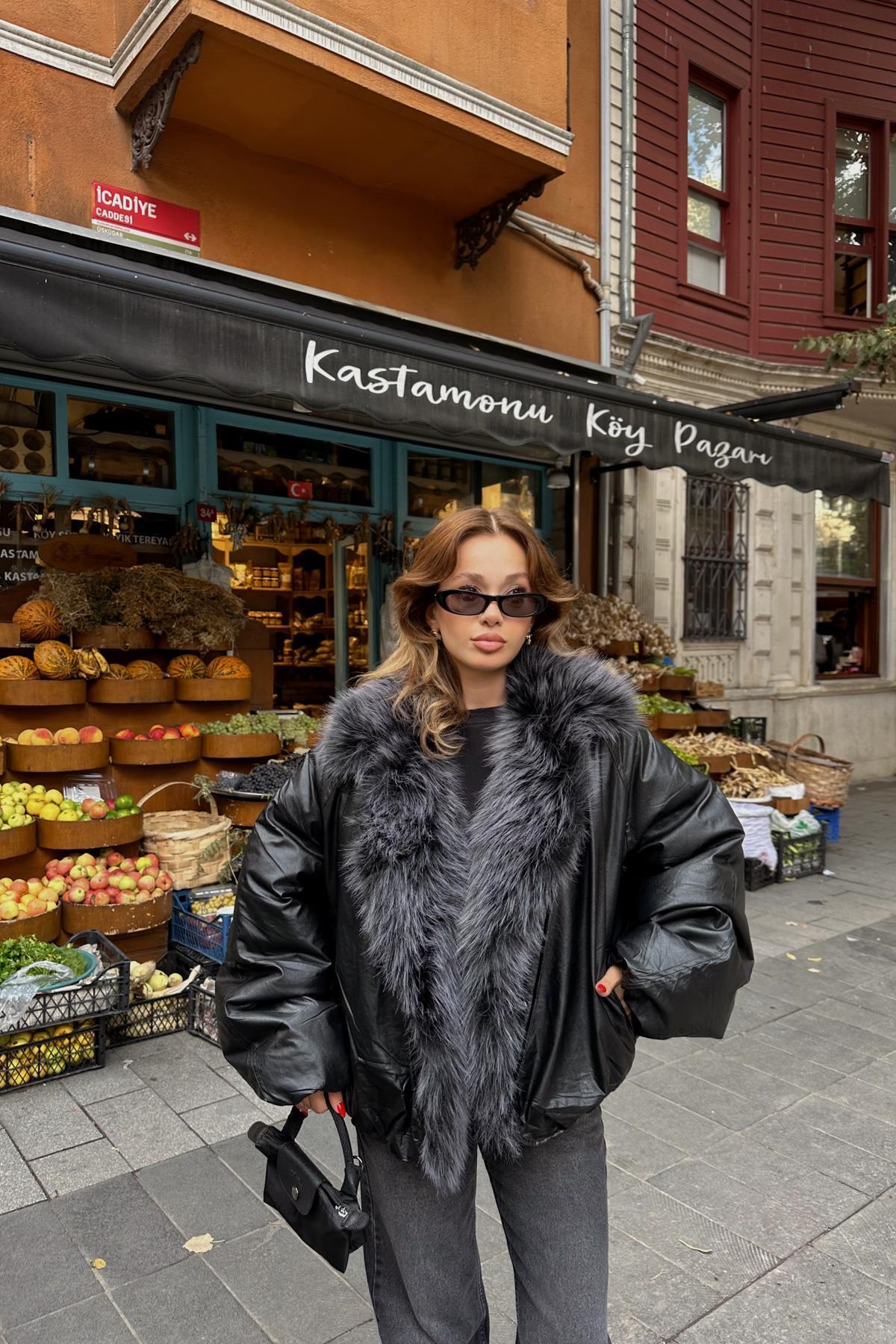 Yakası Takma Suni Kürk Detaylı,Vintage Şişme Deri Mont-Acı Kahve Yakası Takma Suni Kürk Detaylı,Vintage Şişme Deri Mont-Acı Kahve MNT997770 Standart