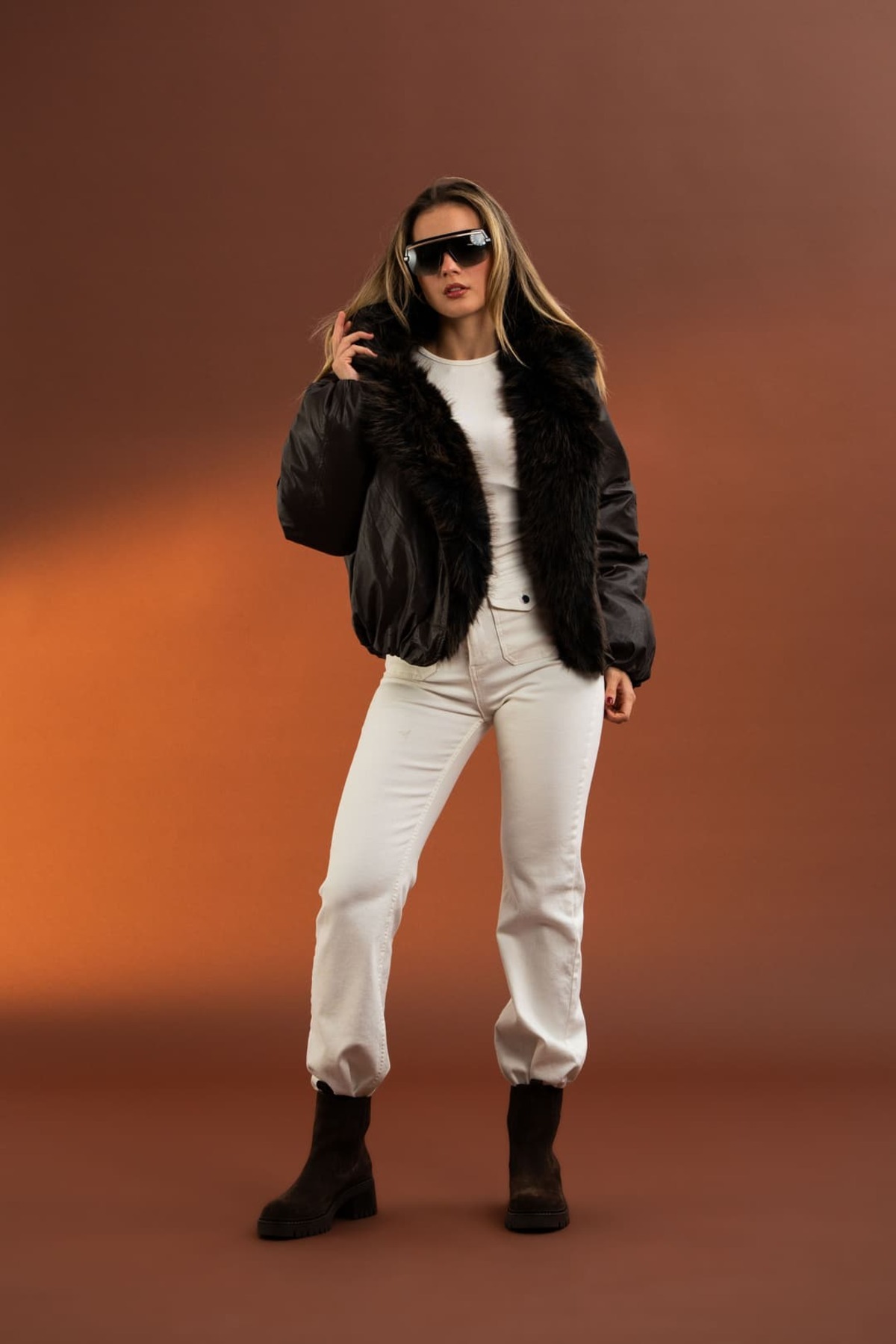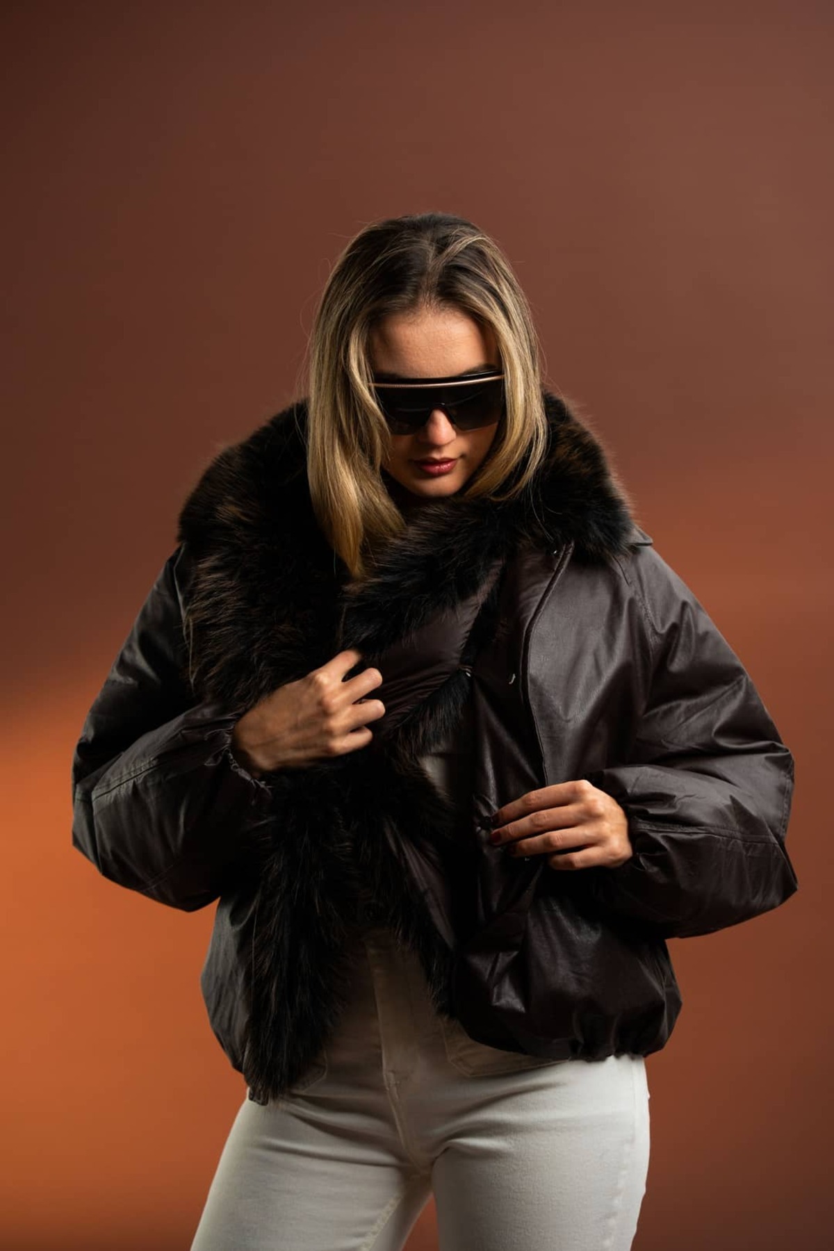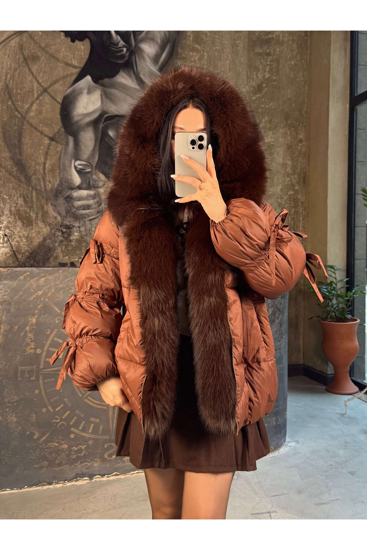 Yakası Takma Suni Kürk Detaylı,Vintage Şişme Deri Mont-Acı Kahve Yakası Takma Suni Kürk Detaylı,Vintage Şişme Deri Mont-Acı Kahve MNT997770 Standart