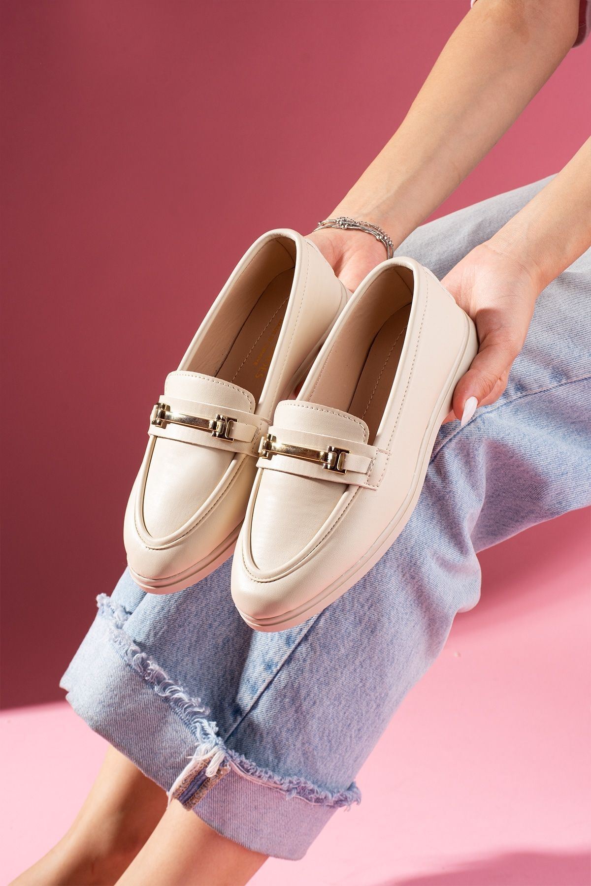 Markiz Bej Cilt Tokalı Loafer Babet Günlük Ayakkabı Markiz Bej Cilt Tokalı Loafer Babet Günlük Ayakkabı 5012ALY 40