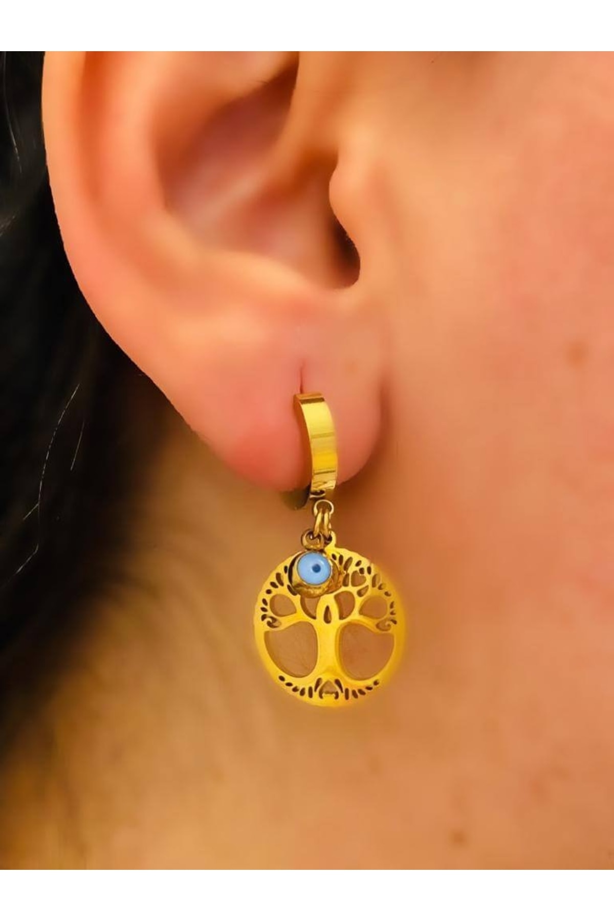 Altın Detaylı Nazar Boncuklu Sallantılı Kadın Çelik Küpe Altın Detaylı Nazar Boncuklu Sallantılı Kadın Çelik Küpe 0987766555555 تک سایز
