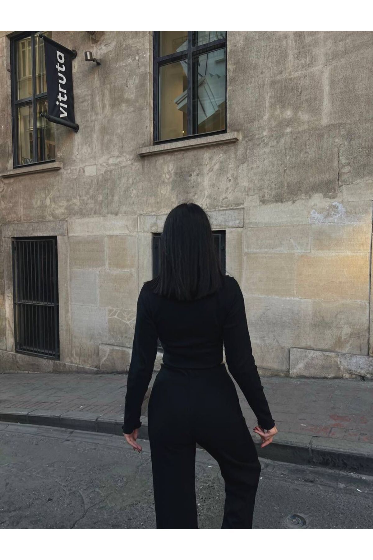 Coool Fitted Modal Dik Yaka Basic Düz Fermuarlı Crop Hırka & Pantolon Takım Coool Fitted Modal Dik Yaka Basic Düz Fermuarlı Crop Hırka & Pantolon Takım 54585695 XL