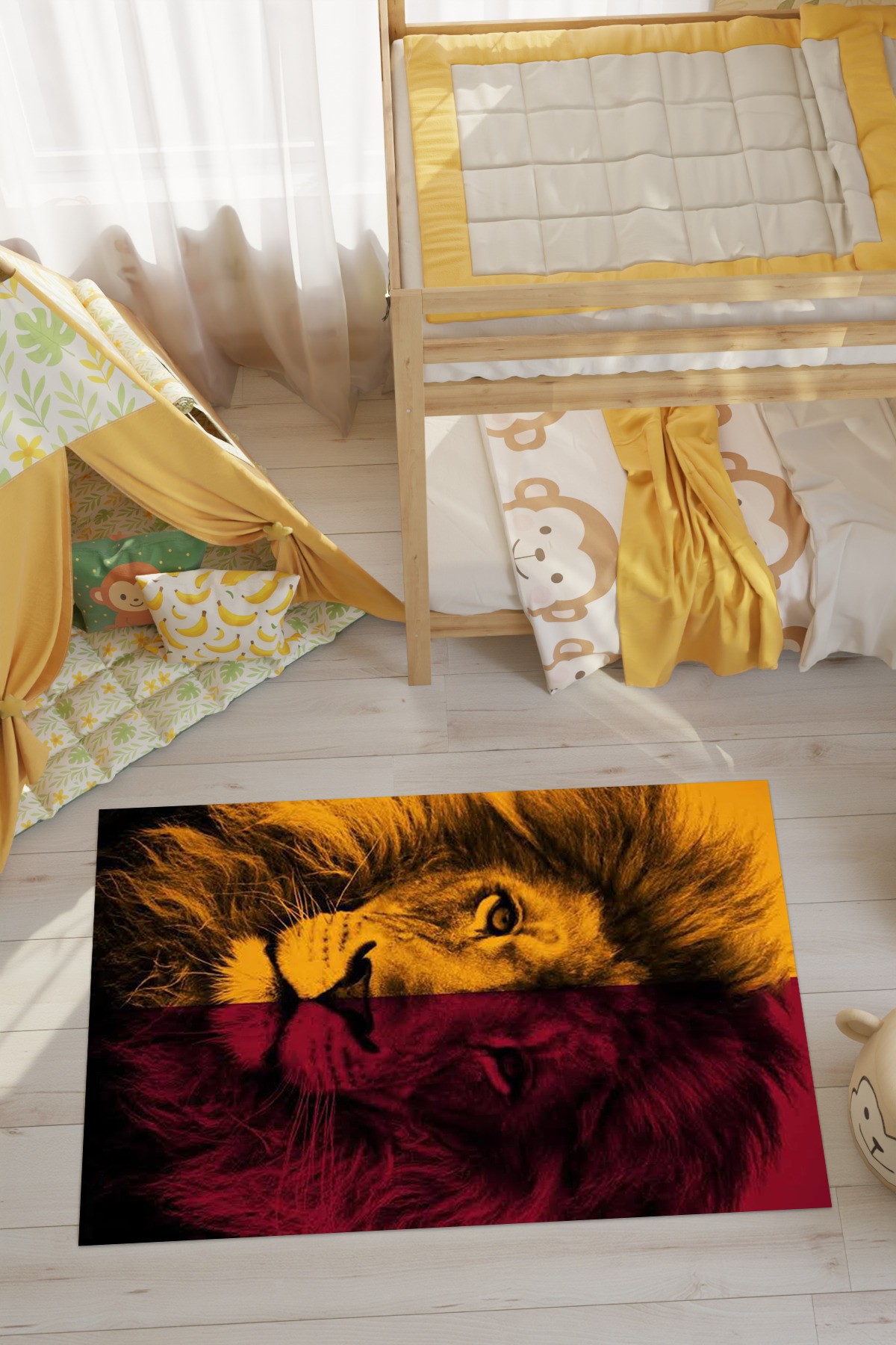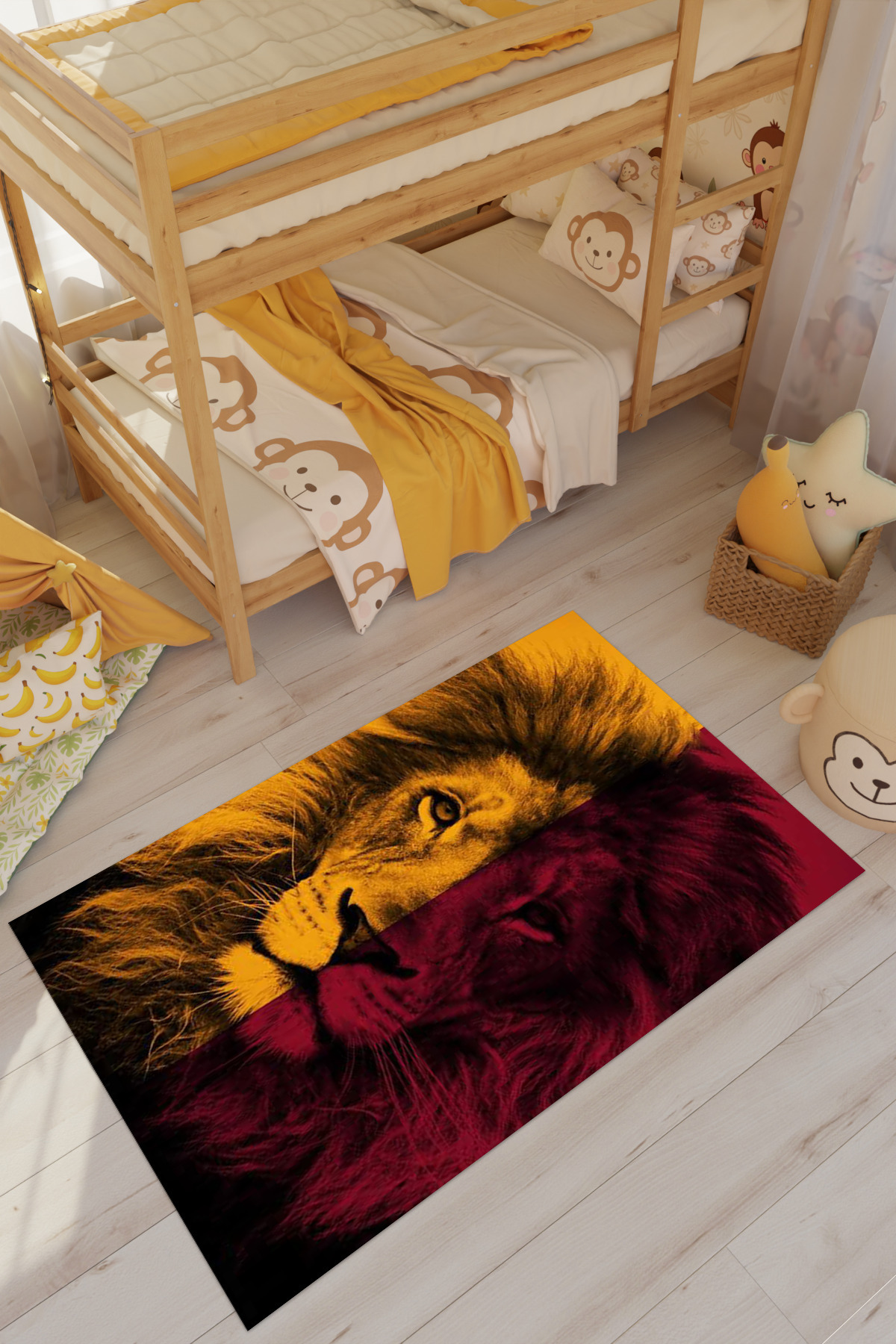 Aslan Desenli Taraftar Dijital Baskılı Makinede Yıkanabilir Kaymaz Leke Tutmaz Çocuk Odası Halısı Aslan Desenli Taraftar Dijital Baskılı Makinede Yıkanabilir Kaymaz Leke Tutmaz Çocuk Odası Halısı DPÇ0215 160 x 230