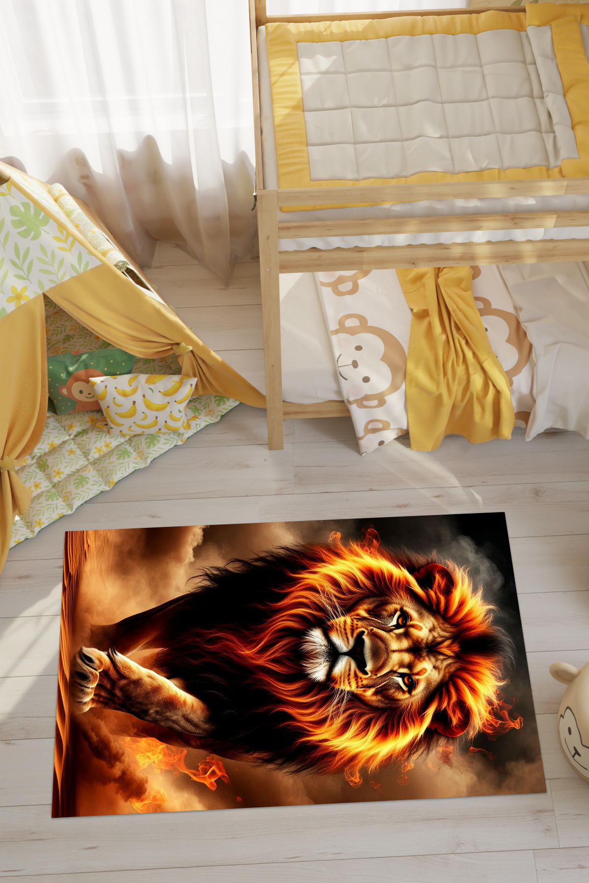 Aslan Desenli Taraftar Dijital Baskılı Makinede Yıkanabilir Kaymaz Leke Tutmaz Çocuk Odası Halısı Aslan Desenli Taraftar Dijital Baskılı Makinede Yıkanabilir Kaymaz Leke Tutmaz Çocuk Odası Halısı DPÇ0215 160 x 230