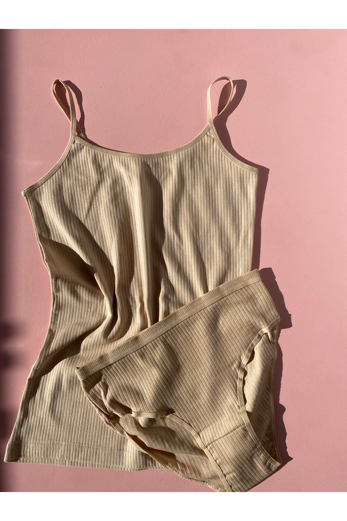 Kadın Ekru Dantel Detaylı Penye Atlet Kaşkorse Seti Kadın Ekru Dantel Detaylı Penye Atlet Kaşkorse Seti W6R0R2 2XL