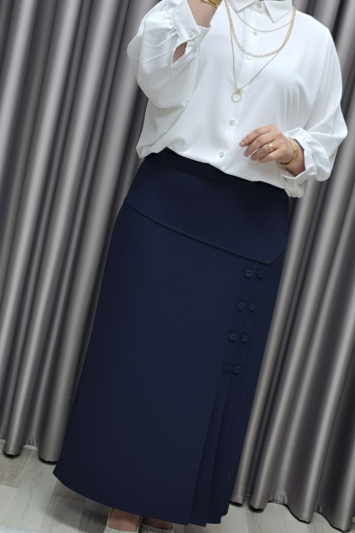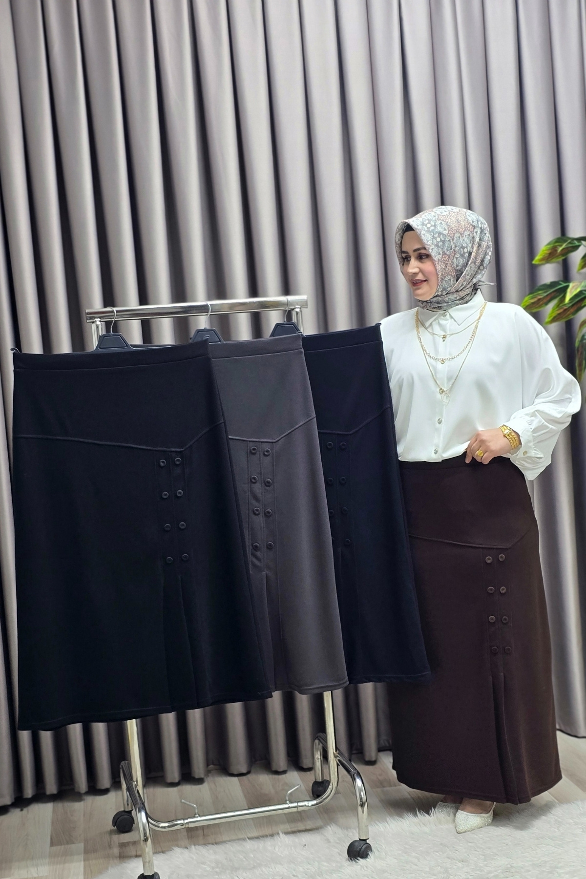 Kadın Giyim Büyük Beden Suna Düğmeli Etek Kadın Giyim Büyük Beden Suna Düğmeli Etek ELT1202 60