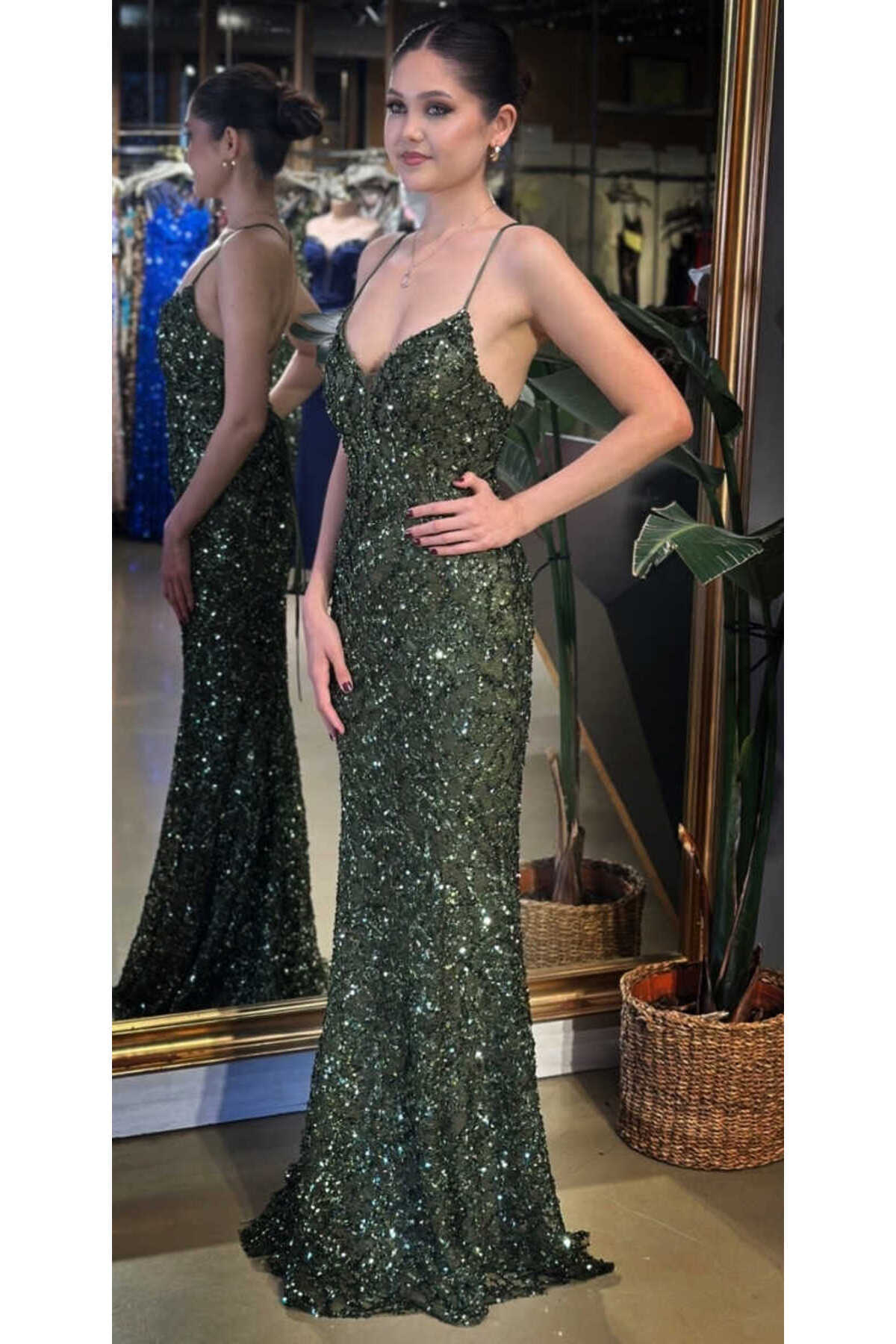 Olive V Yaka İp Askılı Sırt Dekolteli Balık Etekli Pul Payet Uzun Abiye Elbise 11112-04 Olive V Yaka İp Askılı Sırt Dekolteli Balık Etekli Pul Payet Uzun Abiye Elbise 11112-04 44