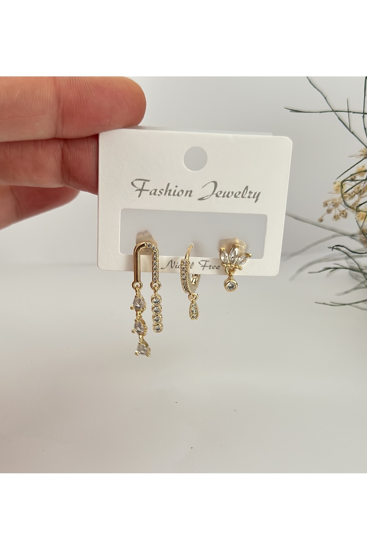 Taşlı 3 lü küpe Taşlı 3 lü küpe mbrlklm12 تک سایز