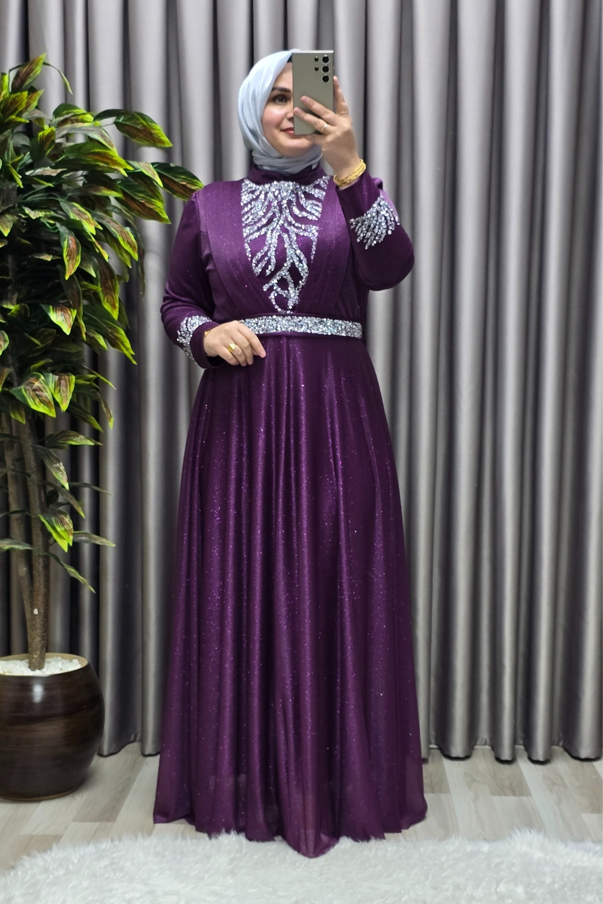 Kadın Tesettür Giyim Büyük Beden V Taşlı Abiye Kadın Tesettür Giyim Büyük Beden V Taşlı Abiye FER8838 60