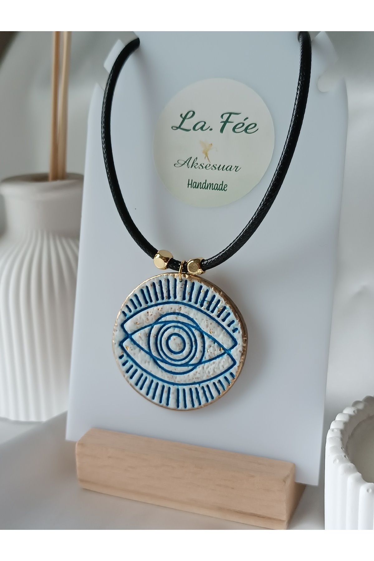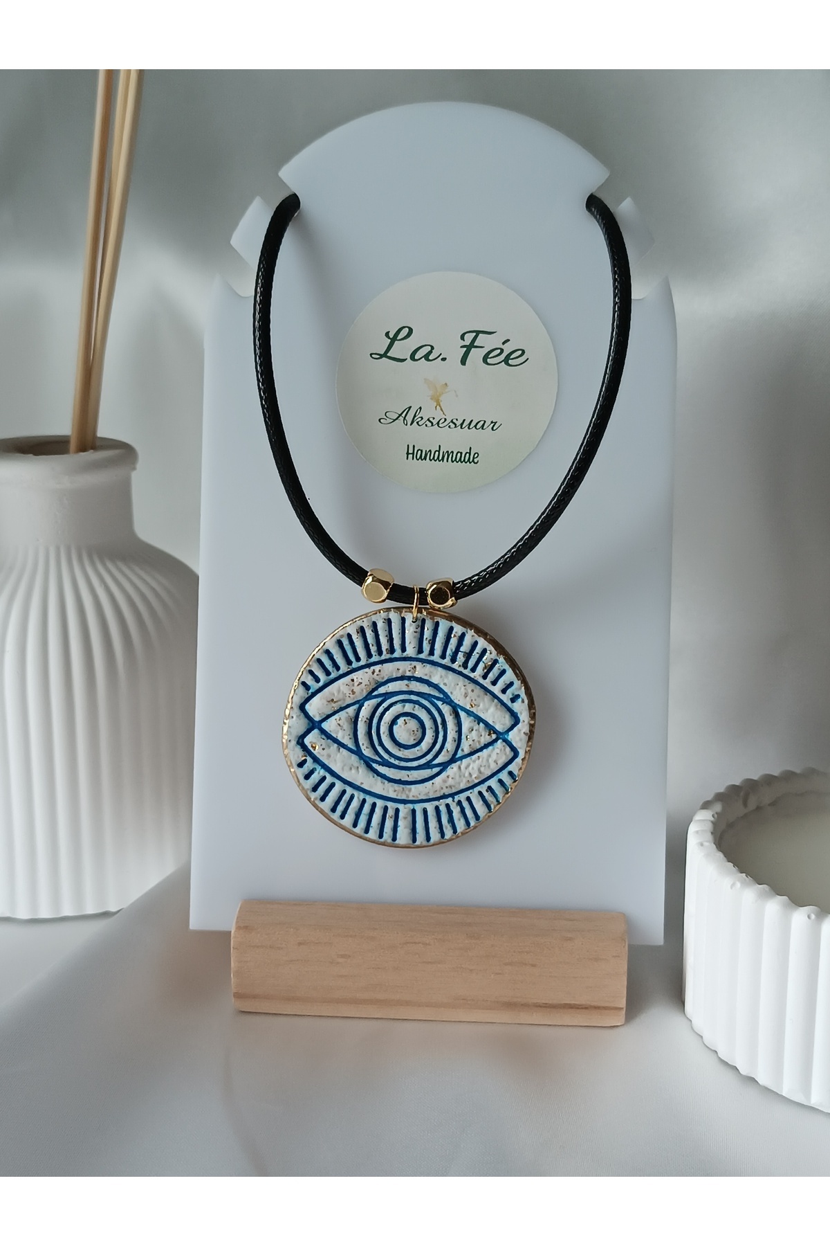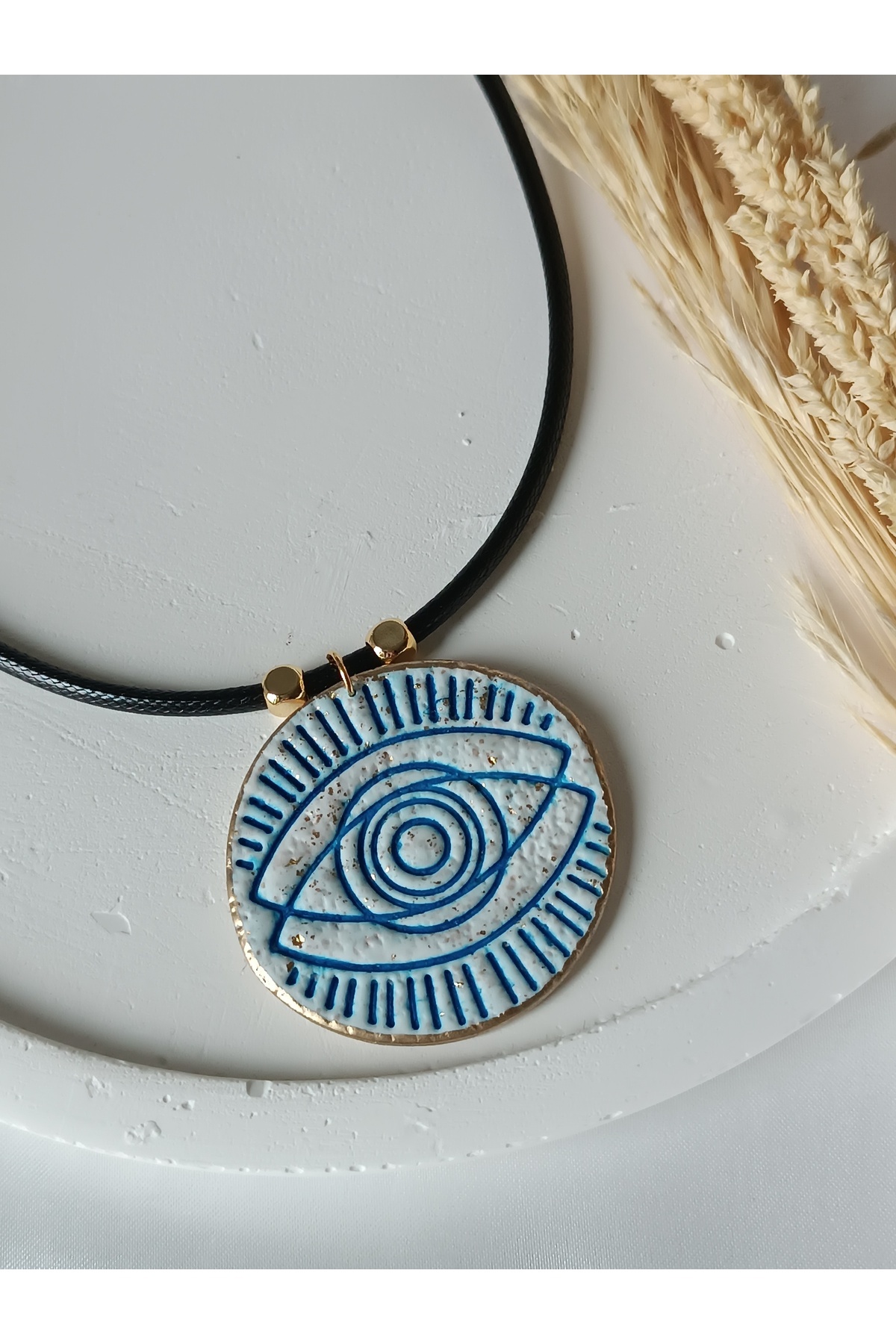 Kadın Kolye Nazar Göz Desen Dokulu Mavi Beyaz Gold Renk Kadın Kolye Nazar Göz Desen Dokulu Mavi Beyaz Gold Renk LAFEE529 40