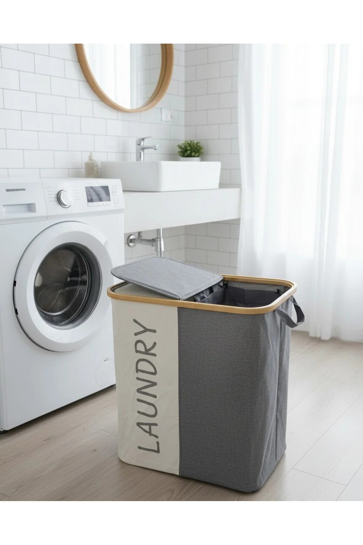 Bambu Kumaş Çamaşır Sepeti Bambu Kumaş Çamaşır Sepeti YM-2052 تک سایز