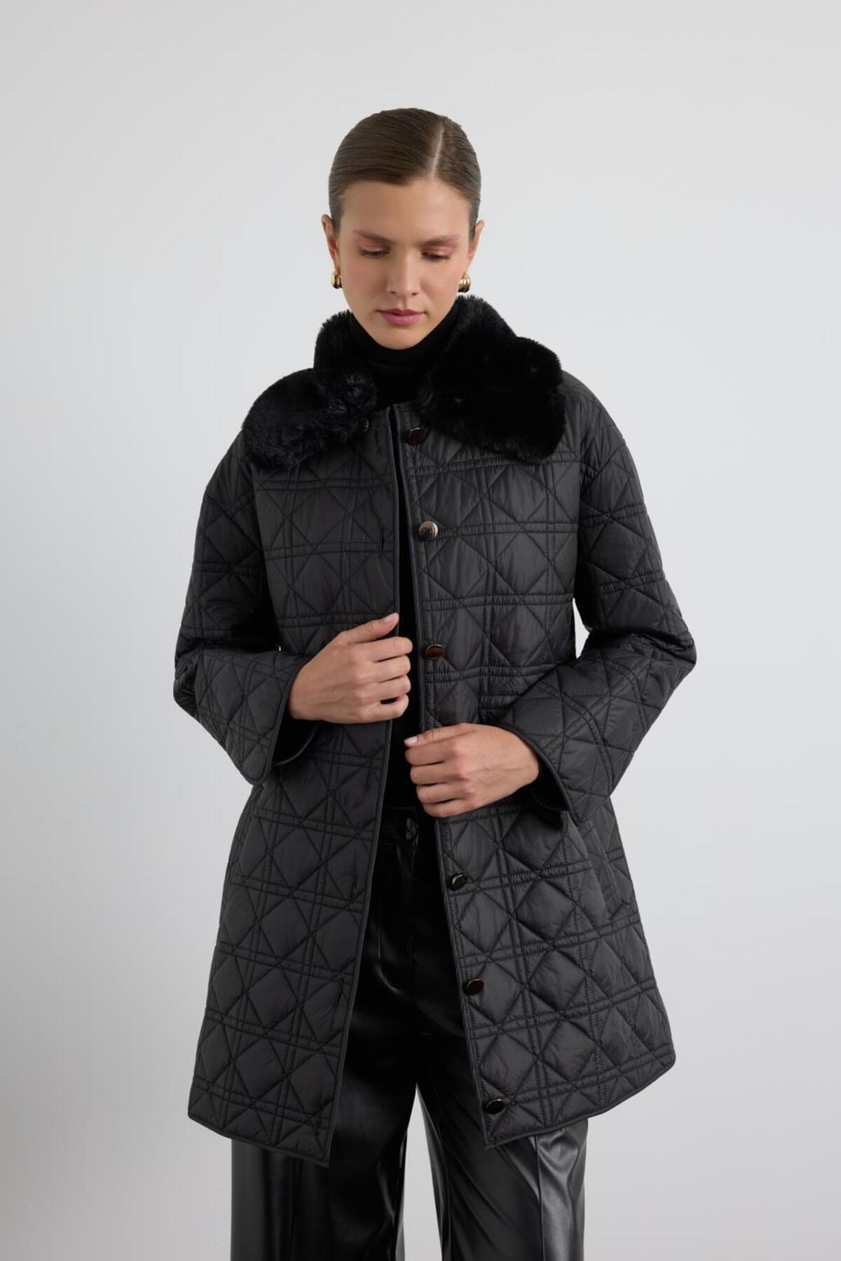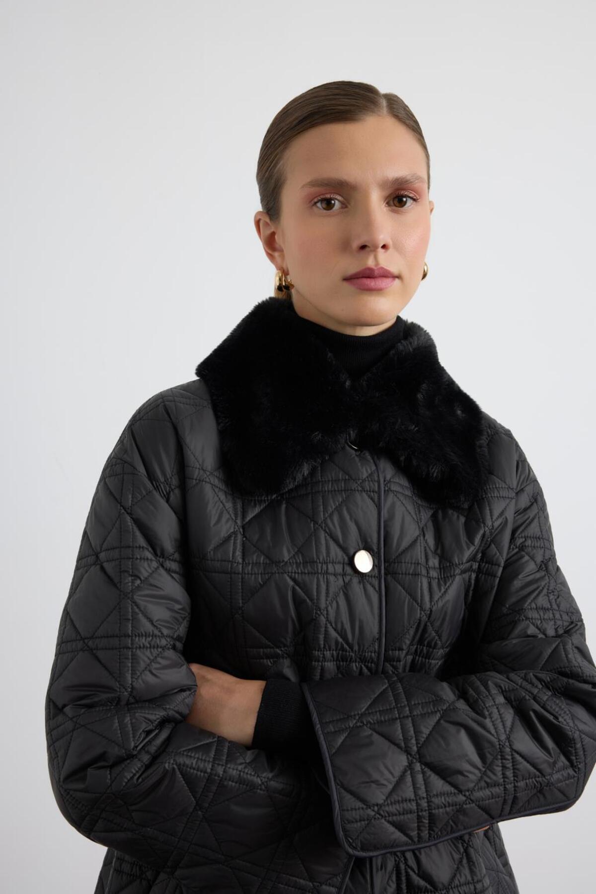 Kürk Yakalı Cepli Kapitone Mont Siyah Kürk Yakalı Cepli Kapitone Mont Siyah KB26KMNT004 2