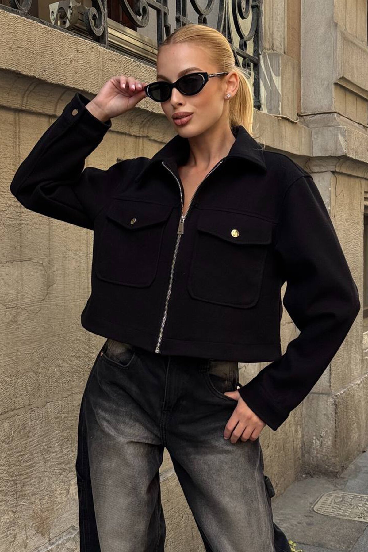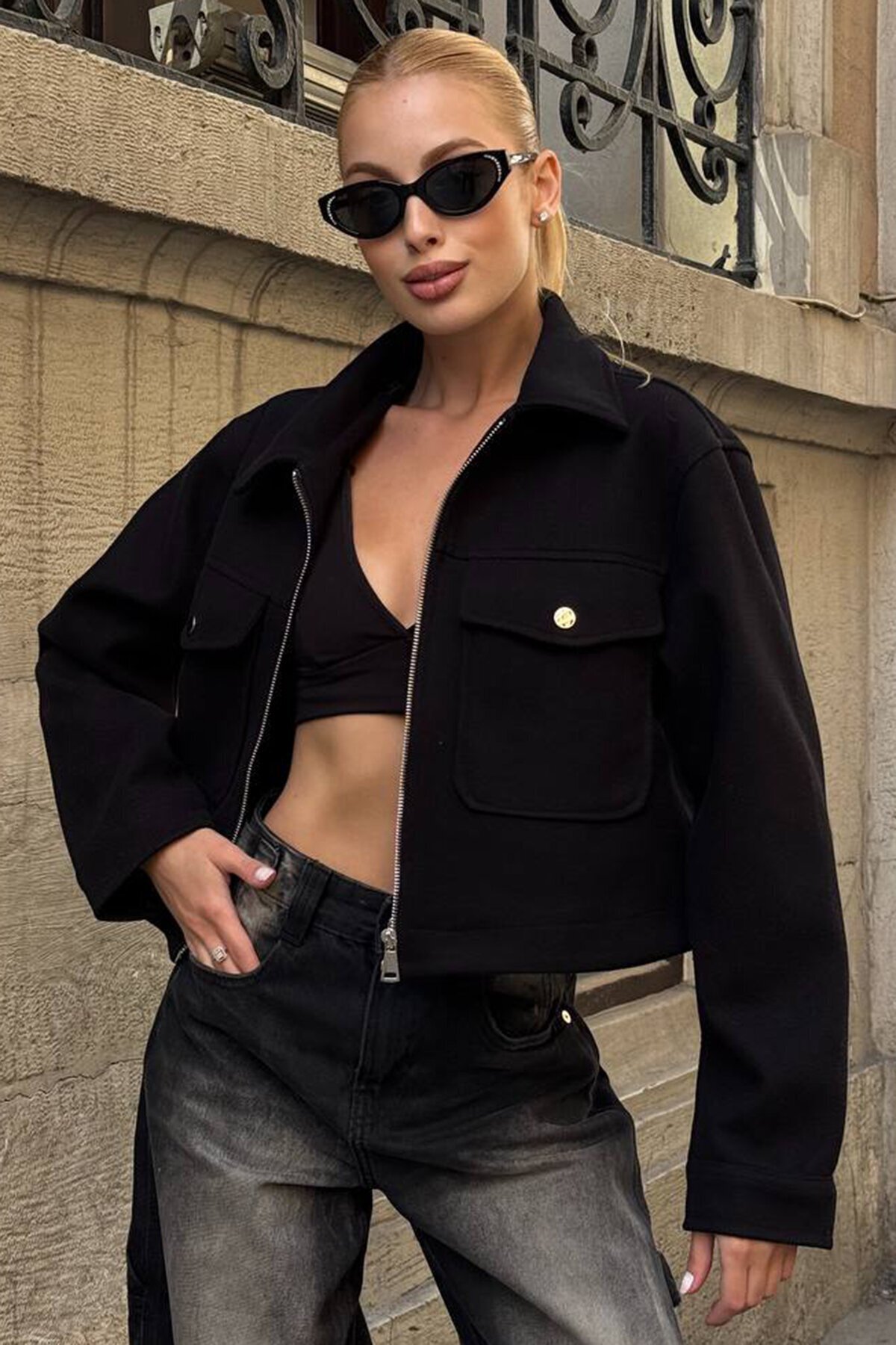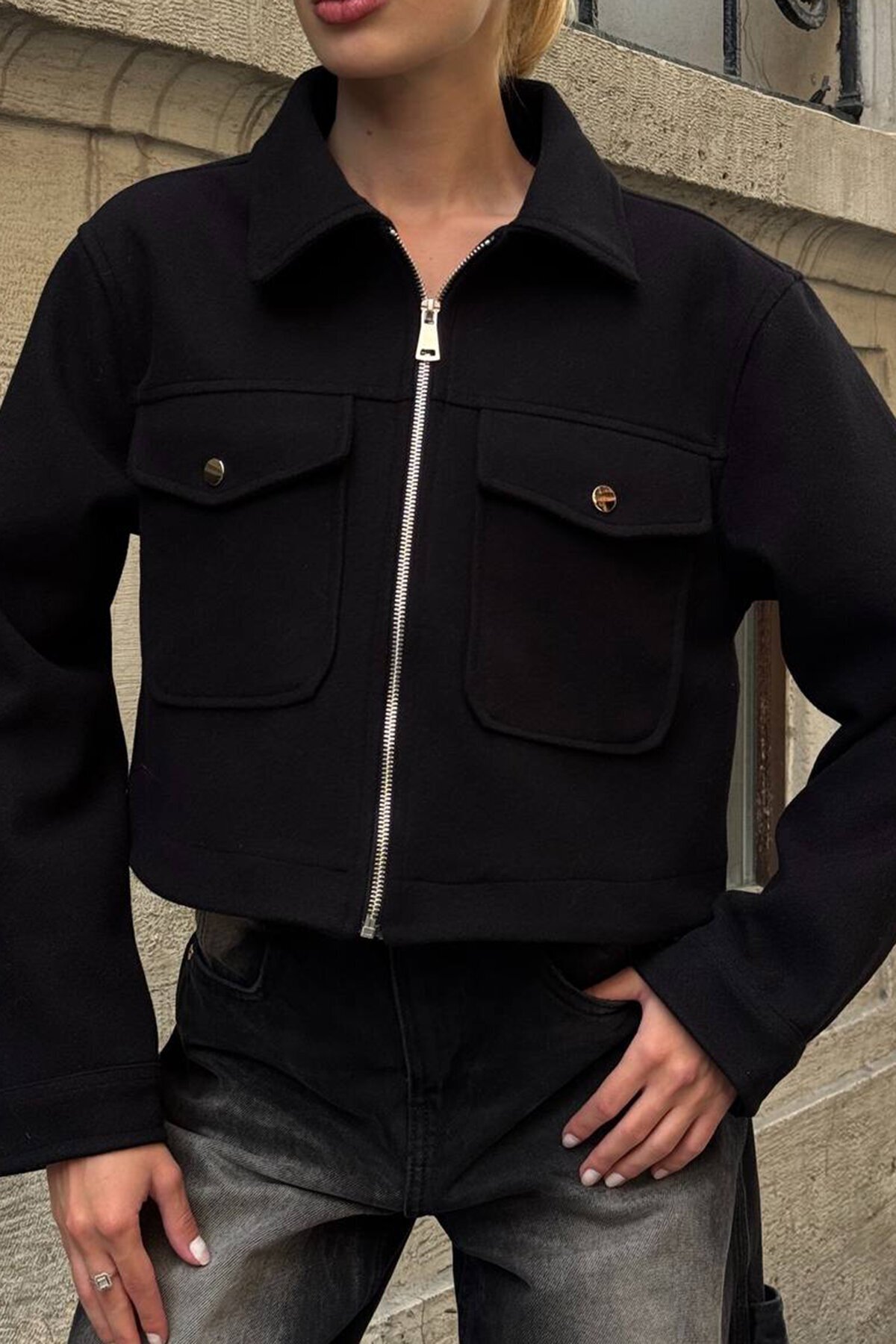 Kadın Siyah Çift Kapak Cepli Fermuar Kapamalı Astarlı Kaşe Ceket Vs01393 Kadın Siyah Çift Kapak Cepli Fermuar Kapamalı Astarlı Kaşe Ceket Vs01393 VS01393 L