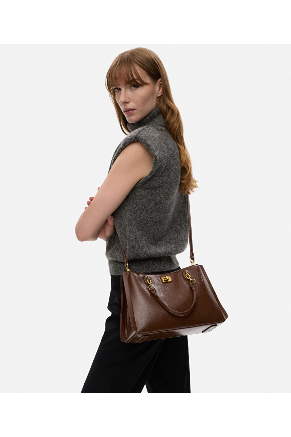 Dokulu deri görünümlü çift askılı çanta Dokulu deri görünümlü çift askılı çanta IW6250052051074 تک سایز