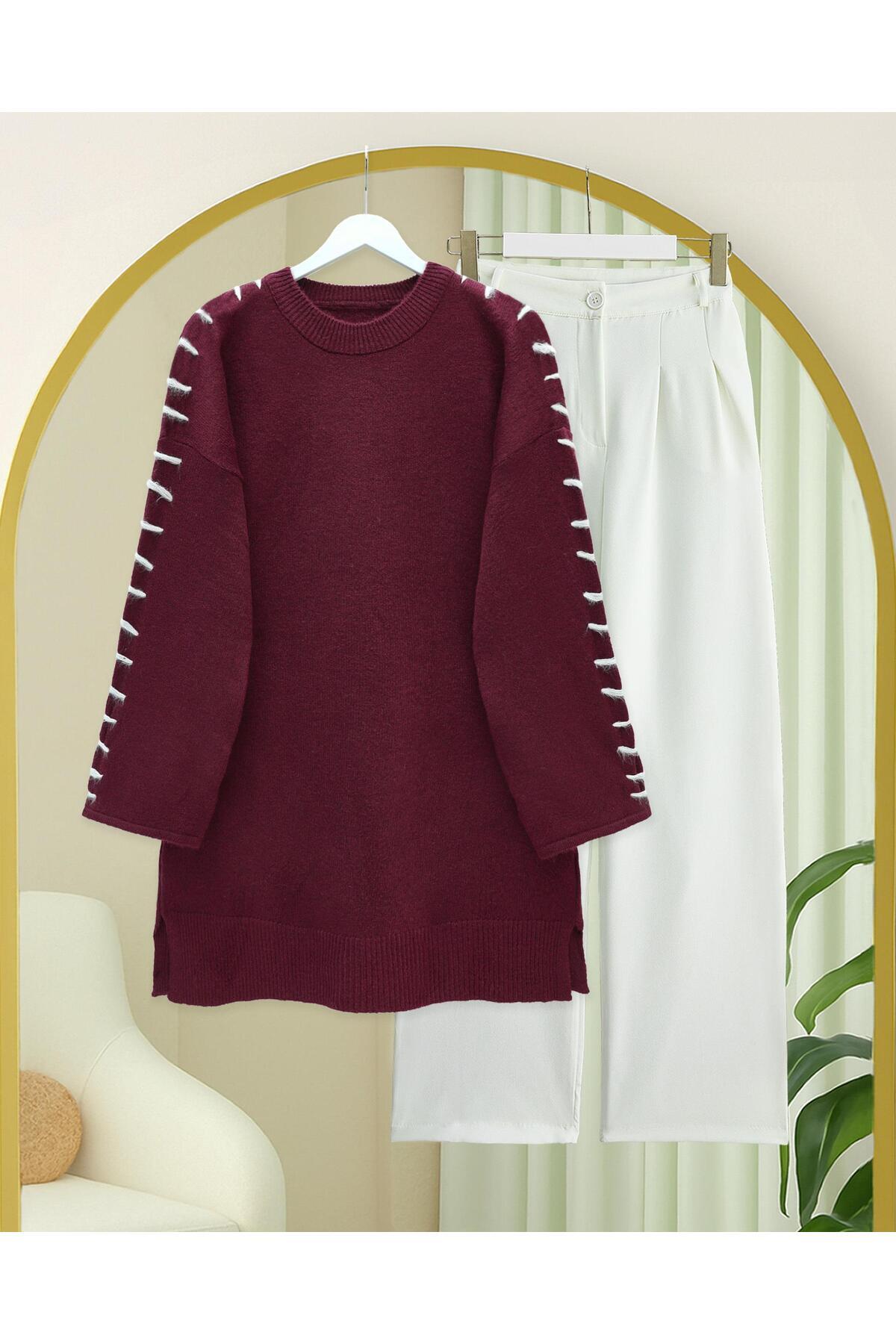 Kolları İpli Çizgili Yumoş Triko Tunik Kolları İpli Çizgili Yumoş Triko Tunik MMG00208 Standart