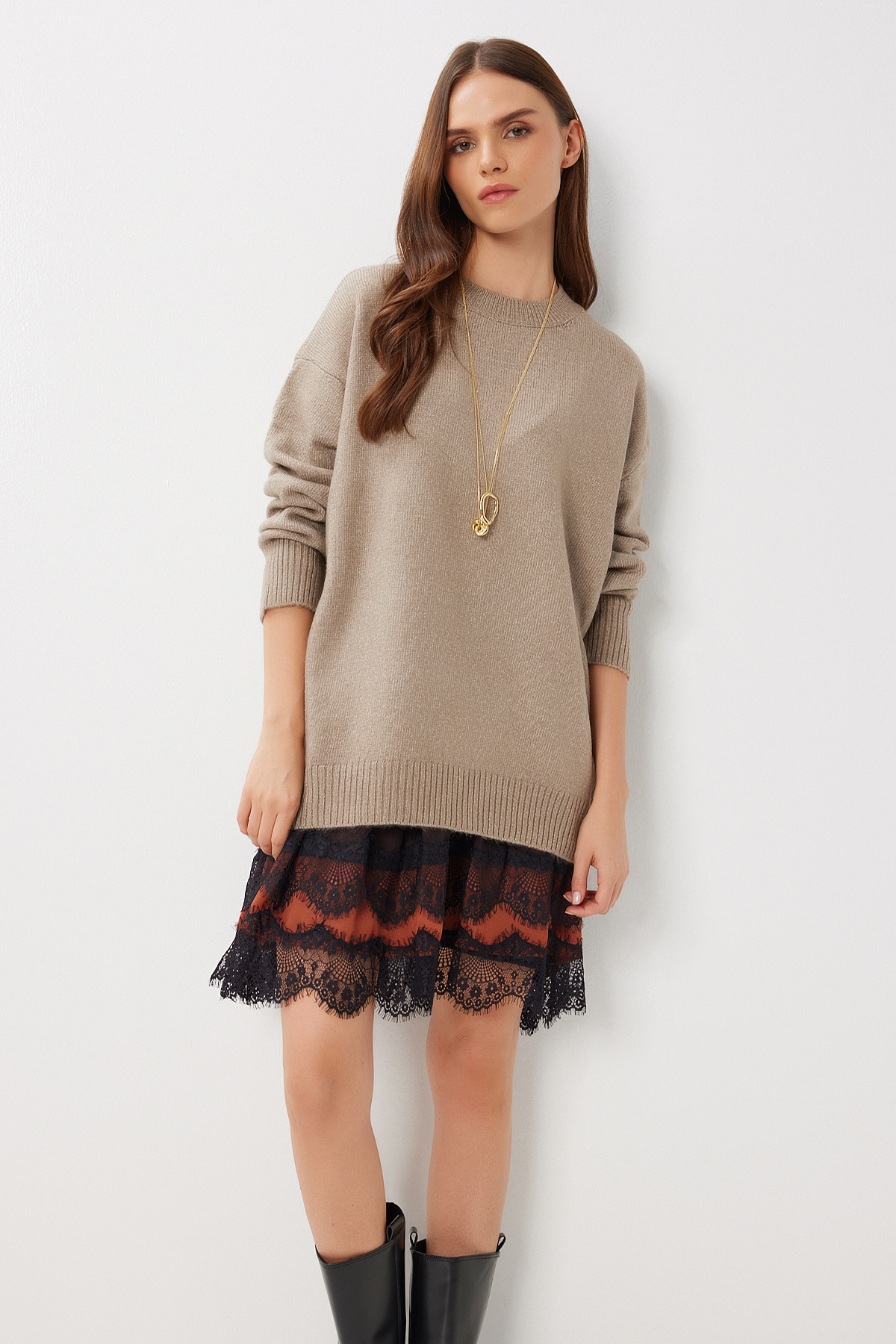 Oversize Yün Karışımlı Kazak LCI0040 BORDO Oversize Yün Karışımlı Kazak LCI0040 BORDO تک سایز