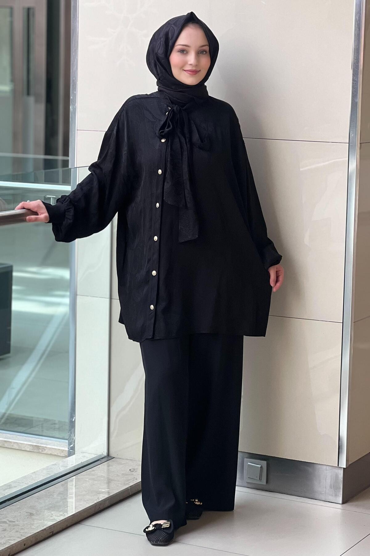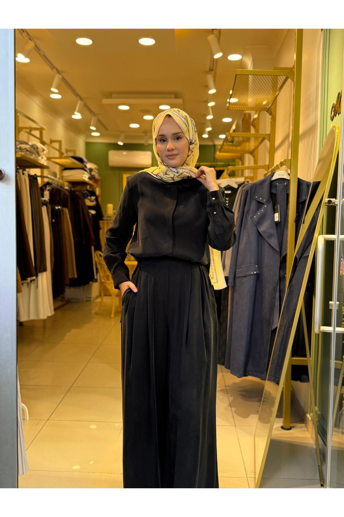 Taşlanmış Modal Pantolonlu Takım 0500004 Siyah Taşlanmış Modal Pantolonlu Takım 0500004 Siyah TKM0032 2