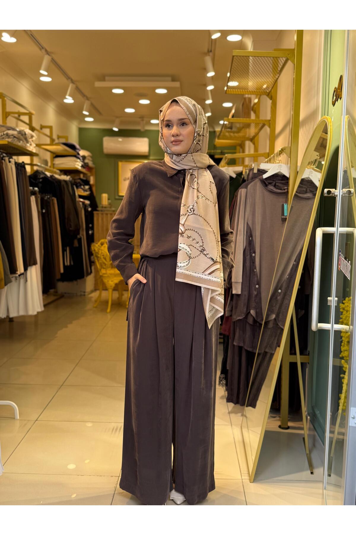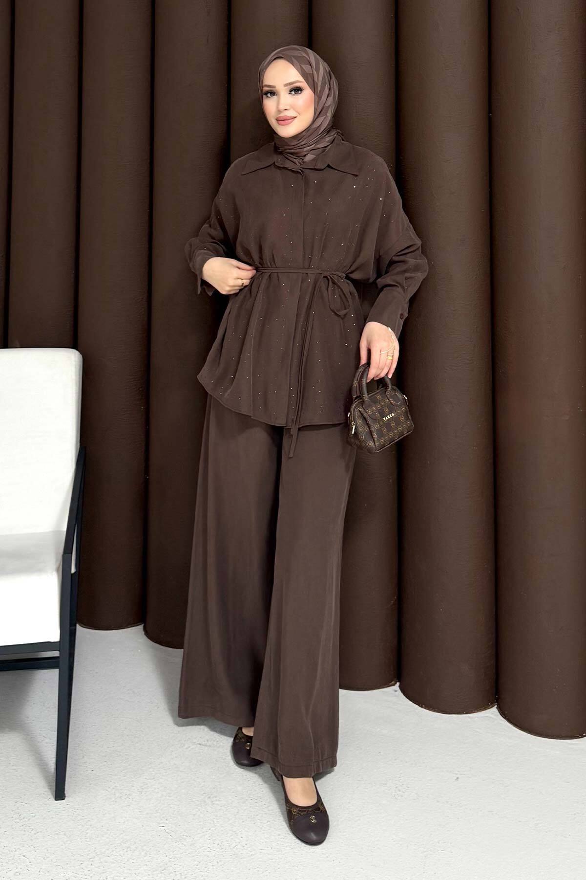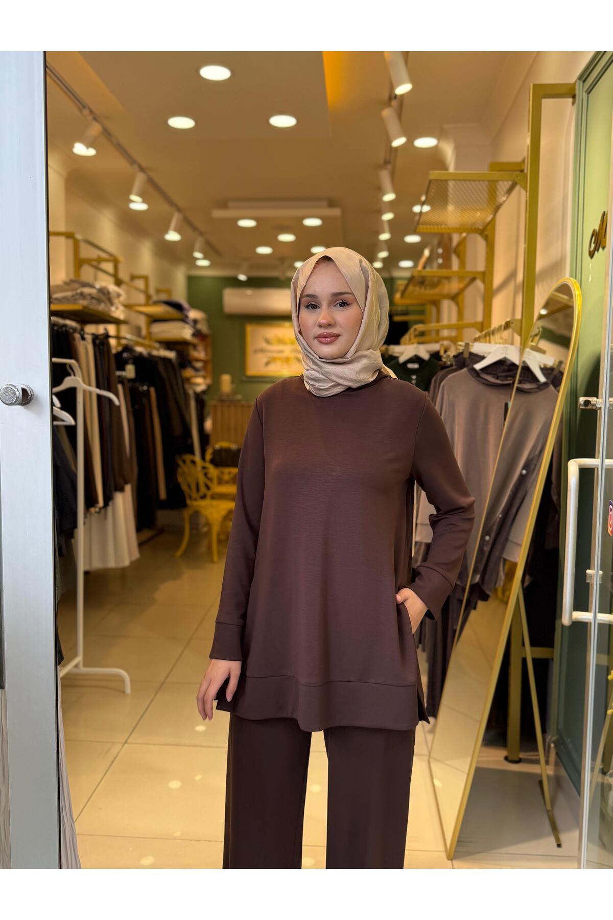 Taşlanmış Modal Pantolonlu Takım 0500004 Kahverengi Taşlanmış Modal Pantolonlu Takım 0500004 Kahverengi TKM0032 2