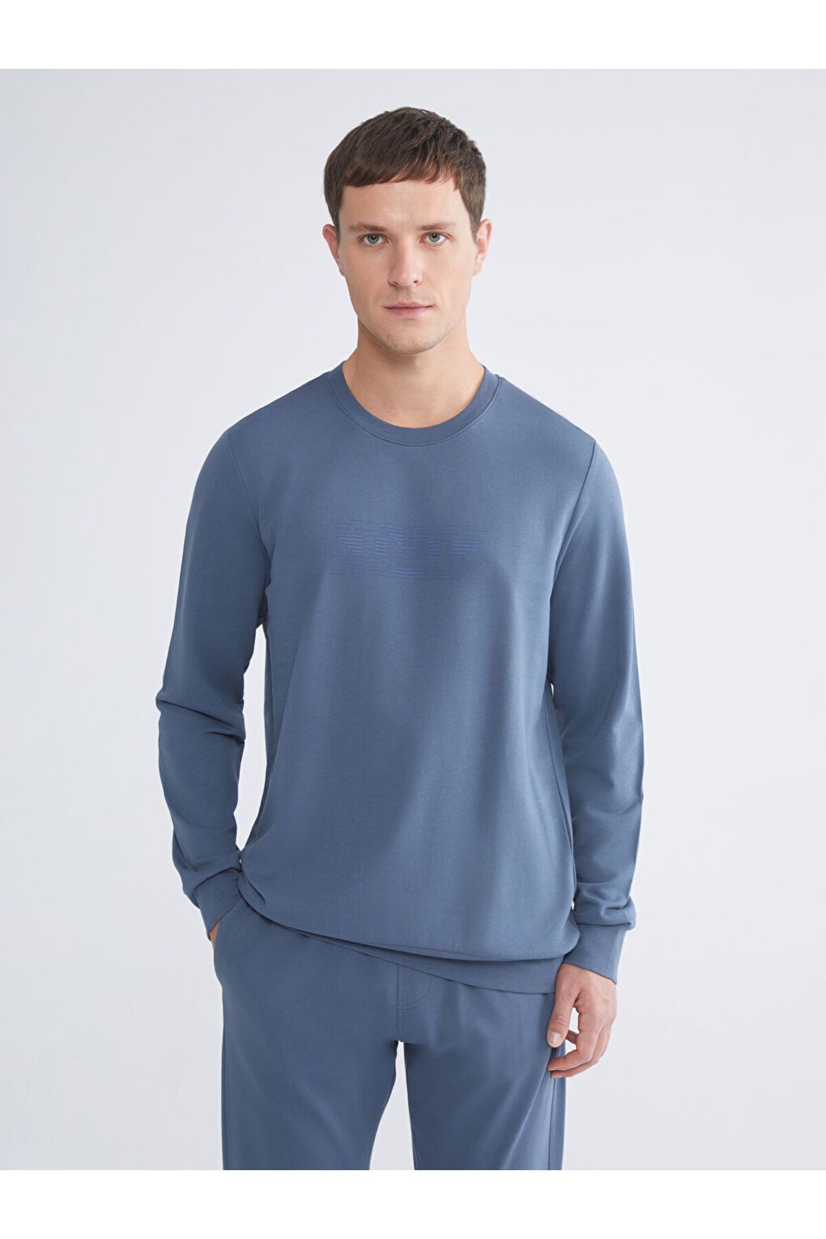 Bisiklet Yaka Baskılı Erkek Sweatshirt Bisiklet Yaka Baskılı Erkek Sweatshirt W5ME40Z8 6XL