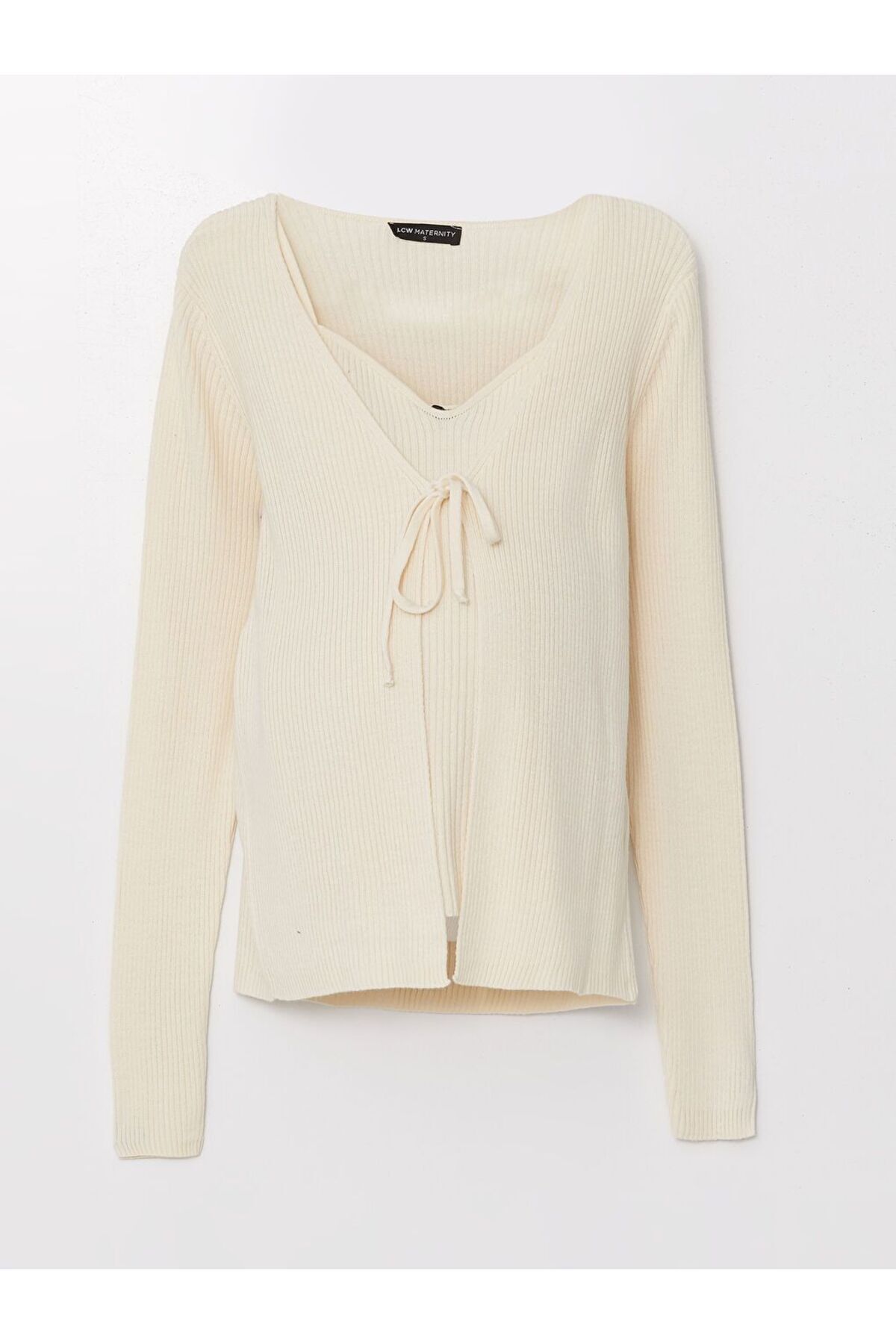 V Yaka Düz Uzun Kollu Hamile Triko Hırka ve Atlet Takım V Yaka Düz Uzun Kollu Hamile Triko Hırka ve Atlet Takım W4G010Z8 2XL