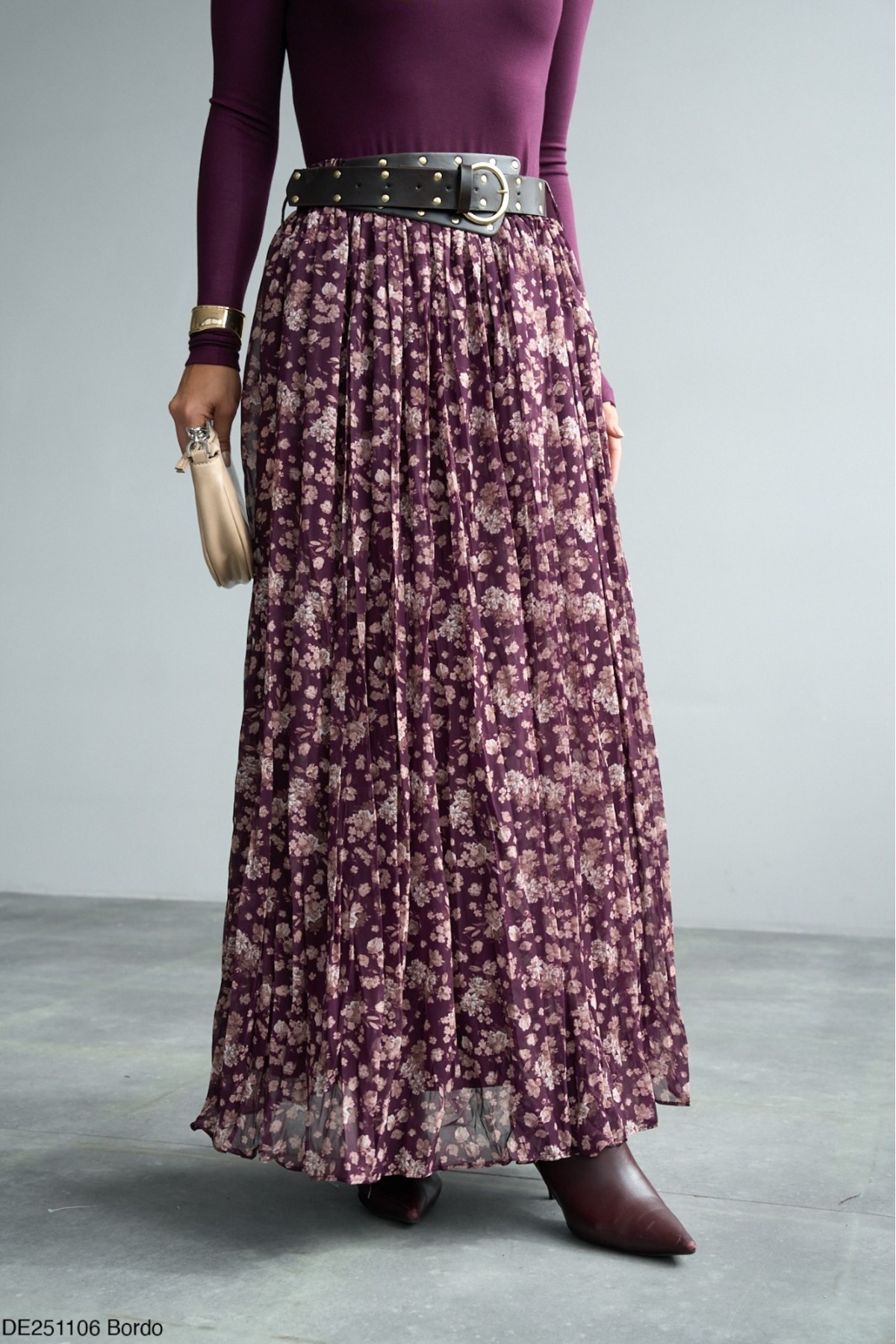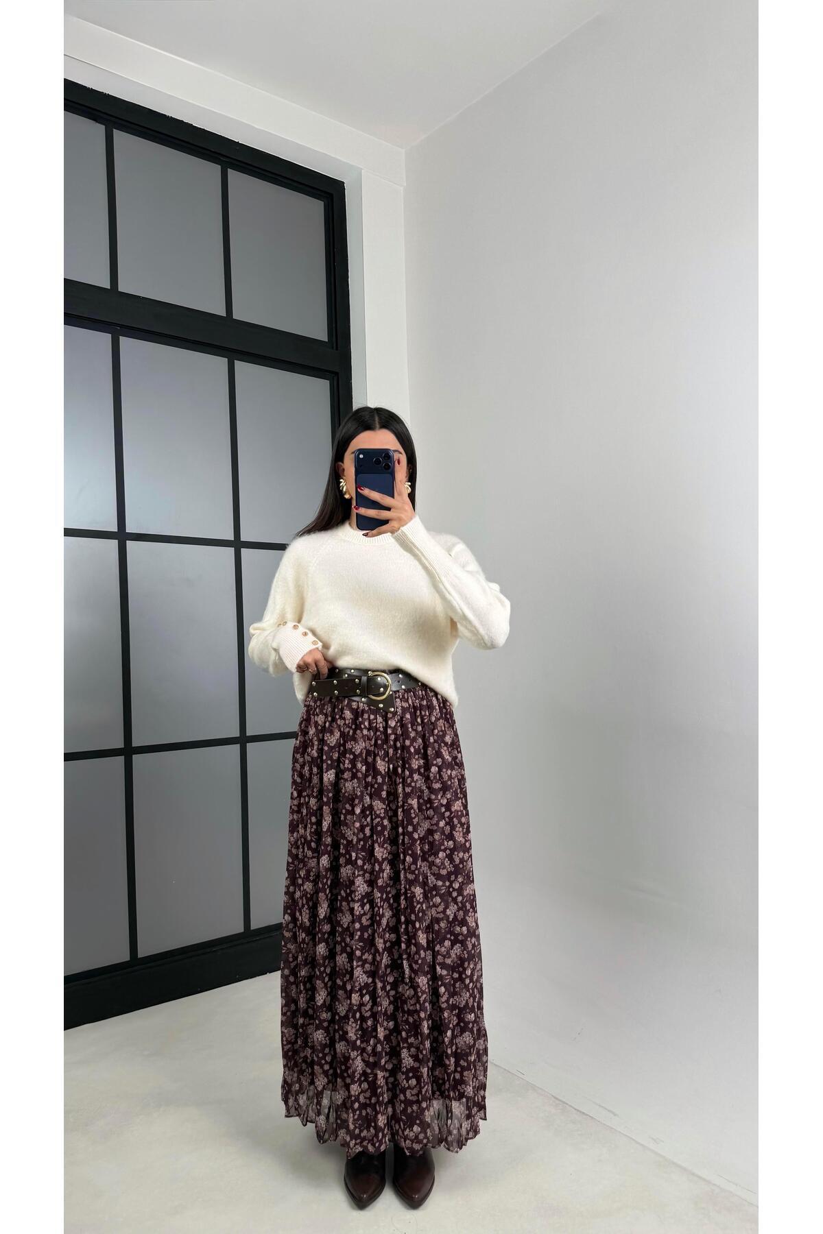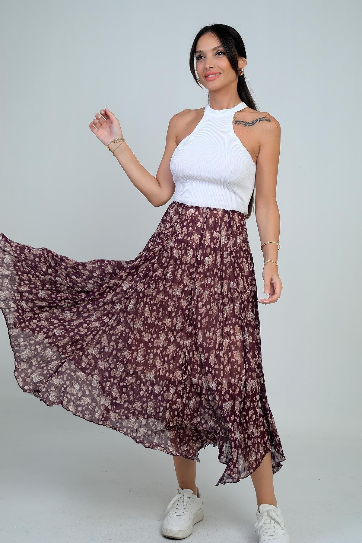 Kadın Desenli Uzun Pileli Etek Kadın Desenli Uzun Pileli Etek DE251106 L