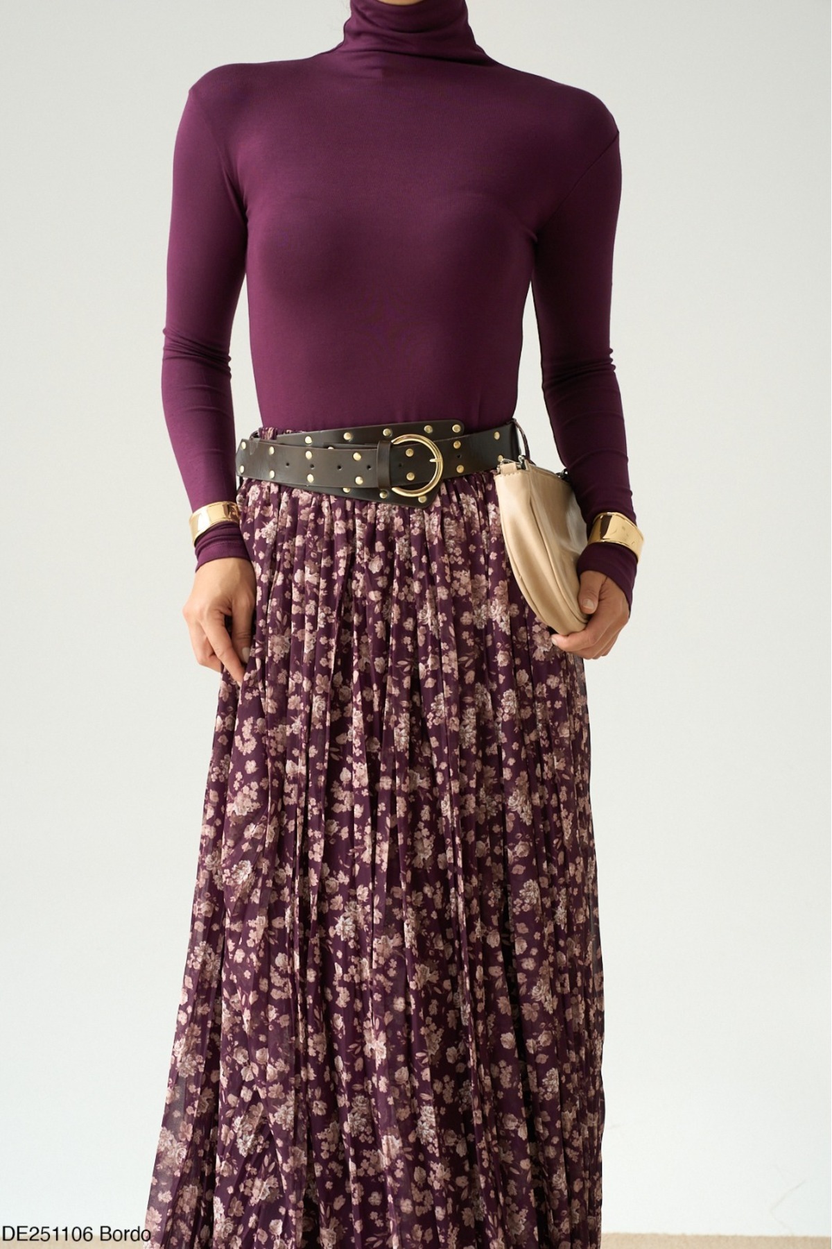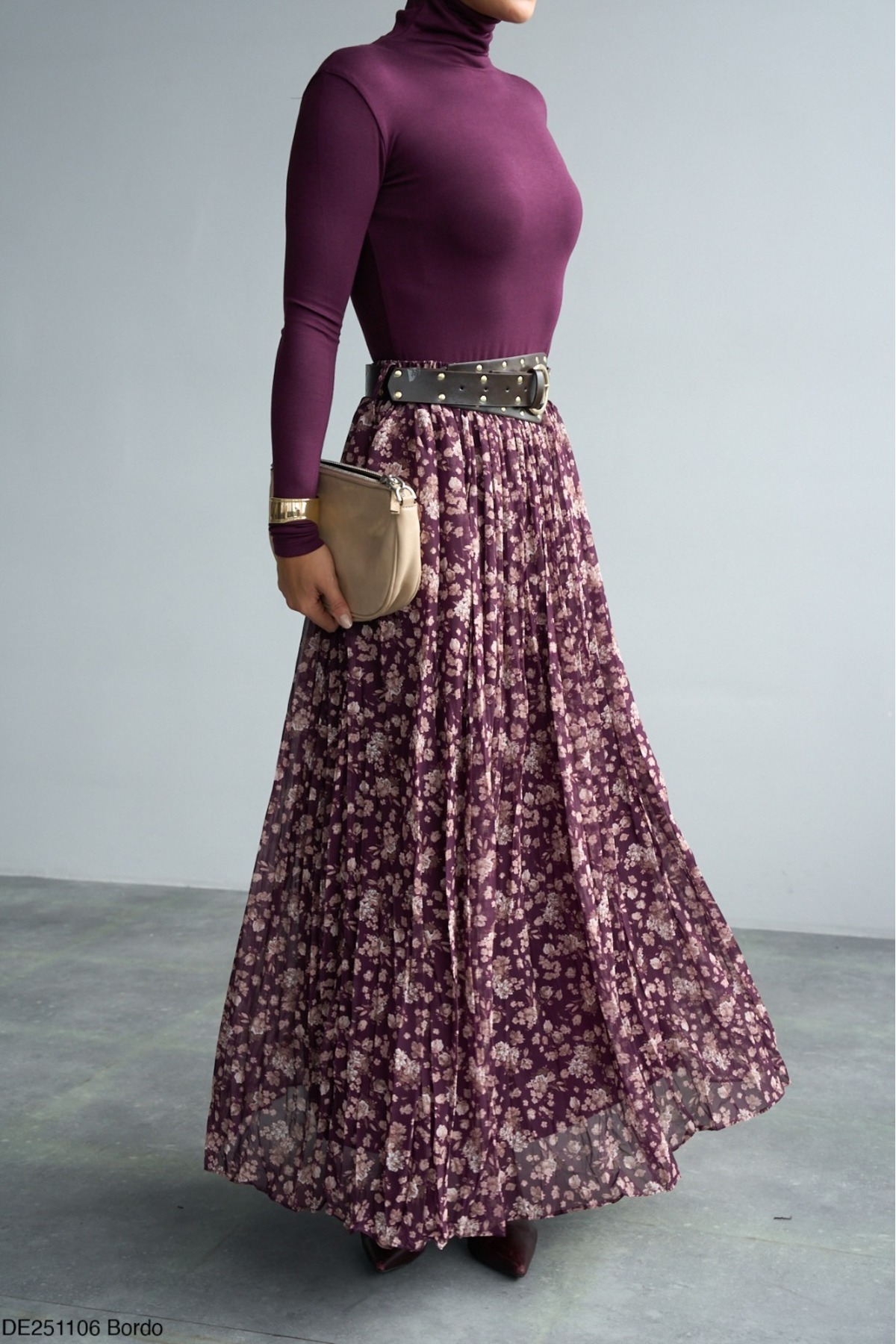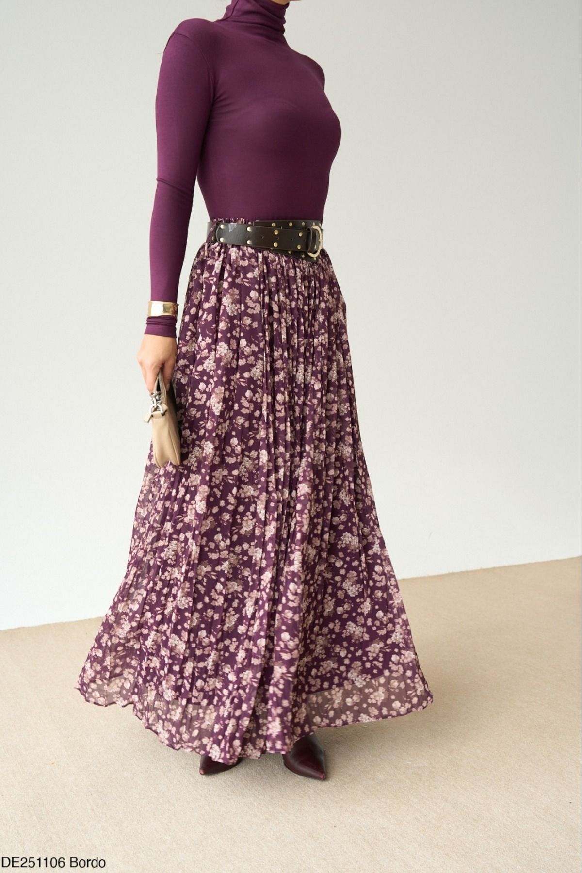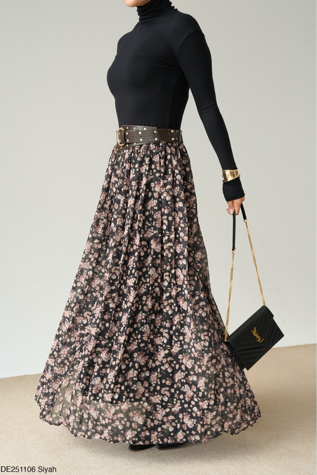 Kadın Desenli Uzun Pileli Etek Kadın Desenli Uzun Pileli Etek DE251106 L