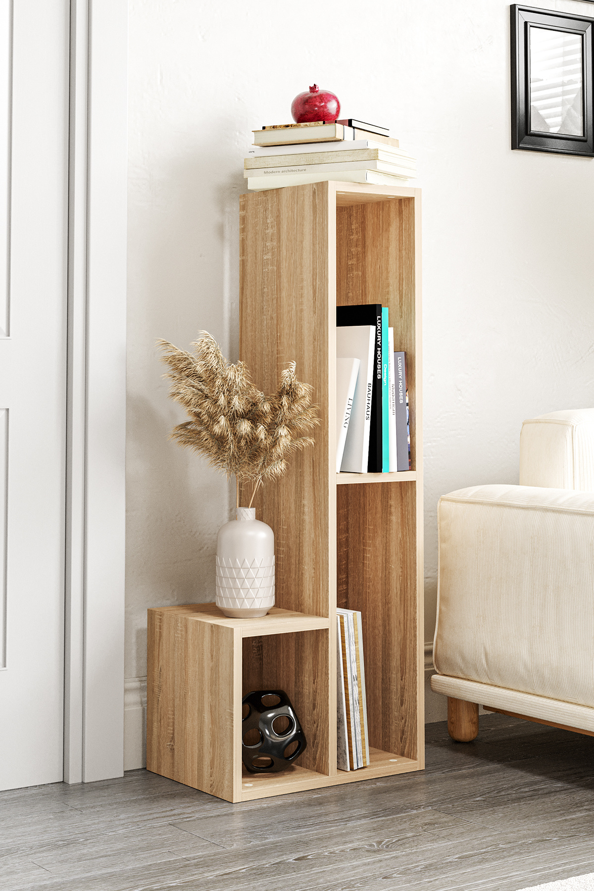 Bucak Çok Amaçlı Kitaplık Tv Ünitesi Meşe Bucak Çok Amaçlı Kitaplık Tv Ünitesi Meşe DKR-BY-07 تک سایز