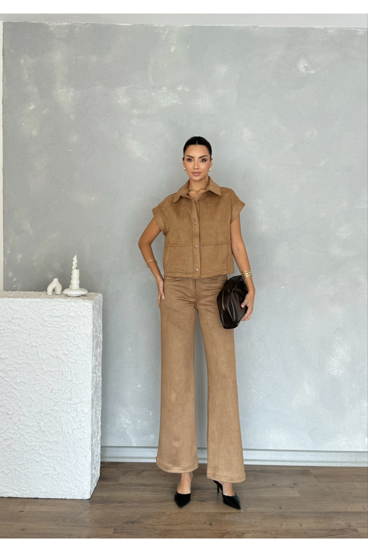 Kadın Yelekli Pantolonlu Süet Takım Kadın Yelekli Pantolonlu Süet Takım EU7014 XL