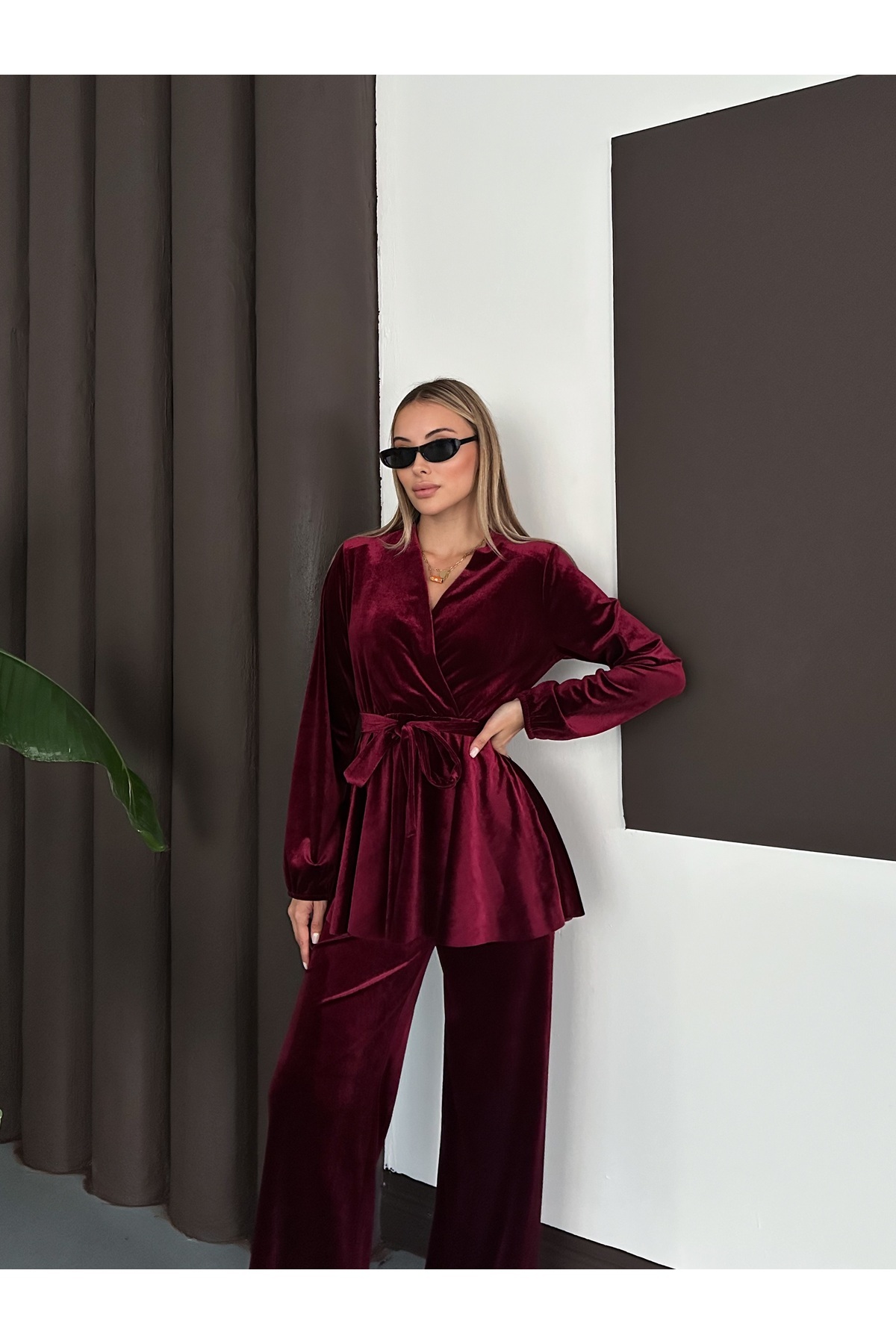Kadife Kumaş Omuz Vatkalı Kuşak Detaylı Şık Kruvaze Takım Kadife Kumaş Omuz Vatkalı Kuşak Detaylı Şık Kruvaze Takım Verakruvaze0477 2XL