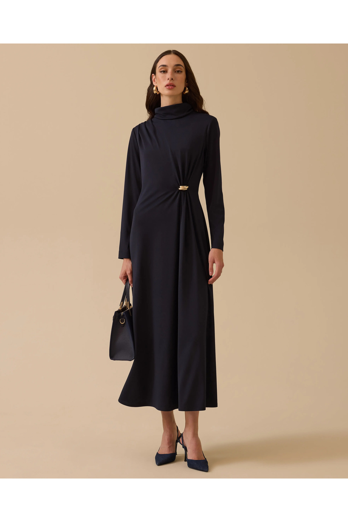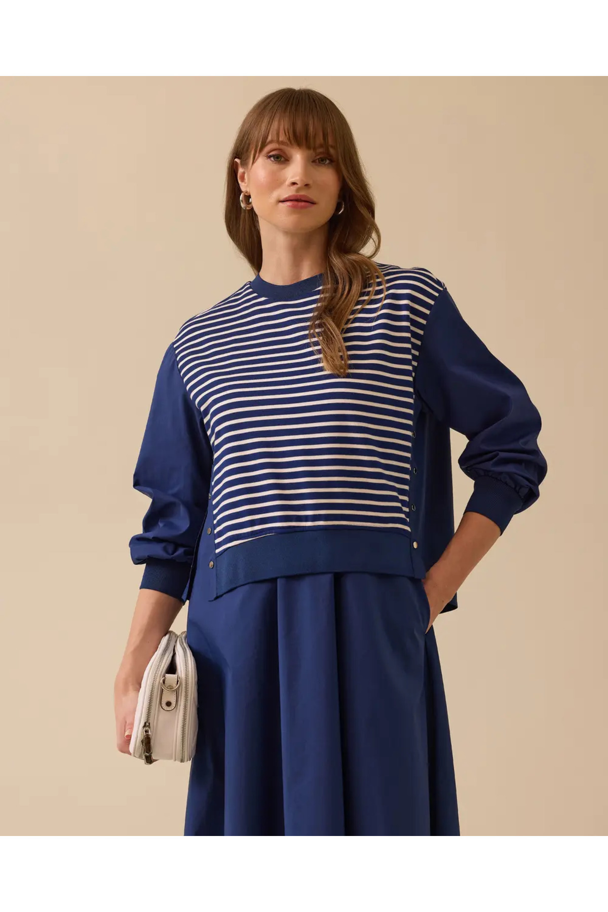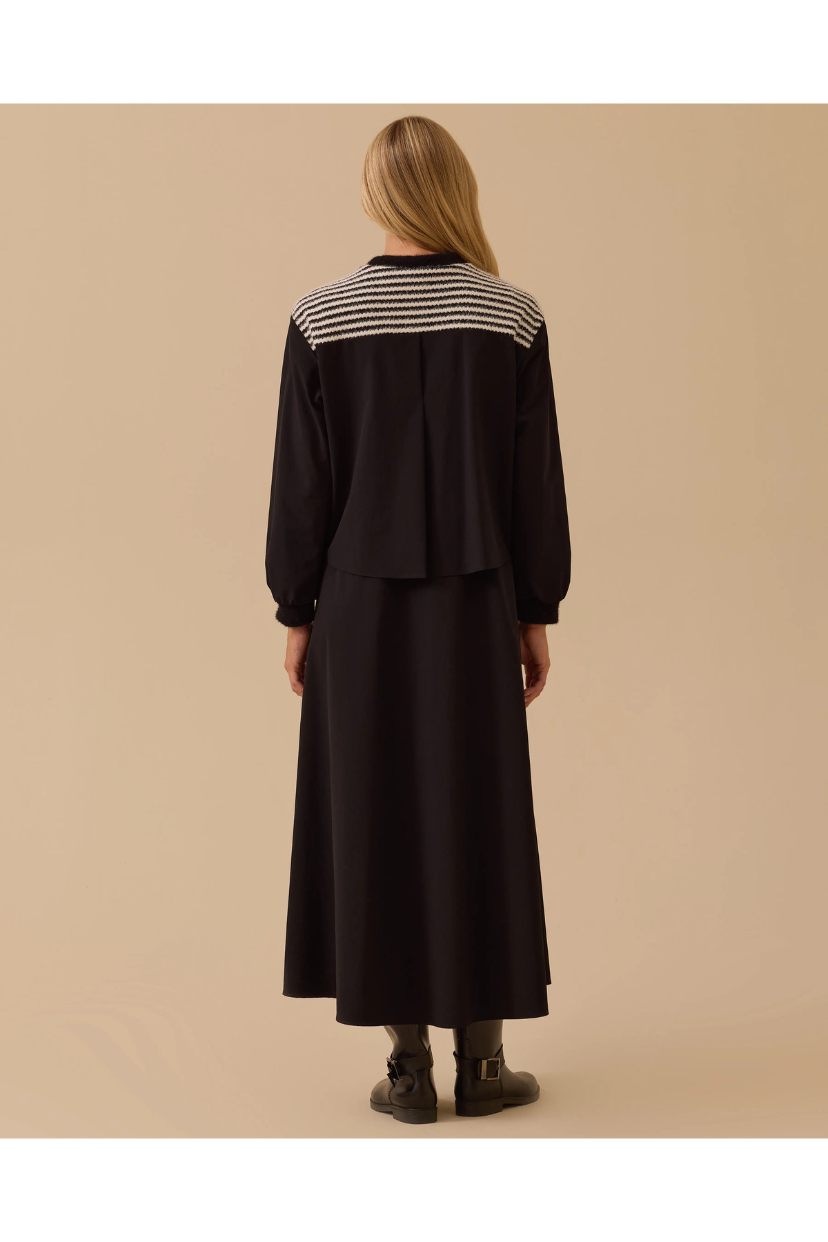 Çift Kumaşlı Çizgi Desenli Elbise Çift Kumaşlı Çizgi Desenli Elbise 10002521311027 L