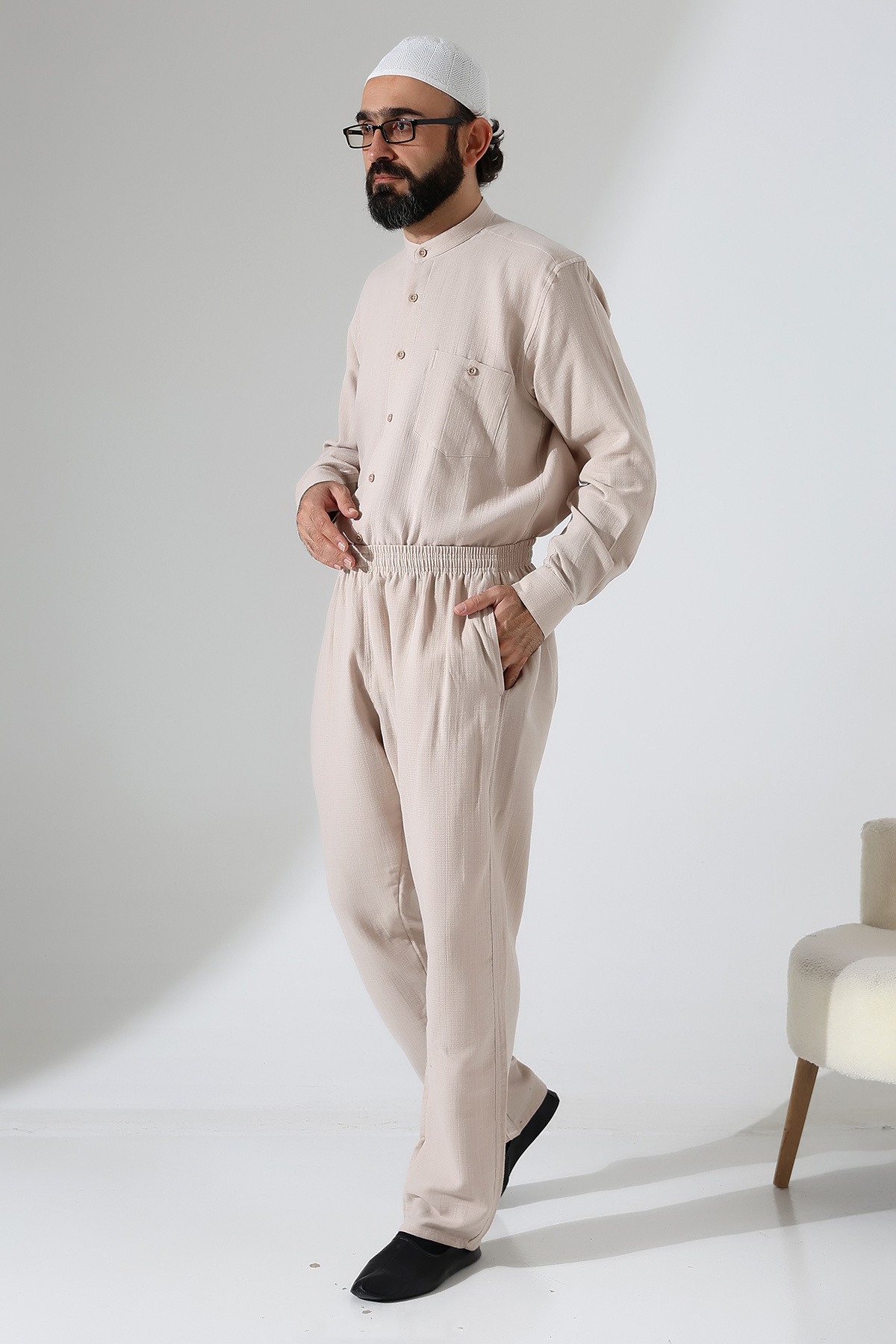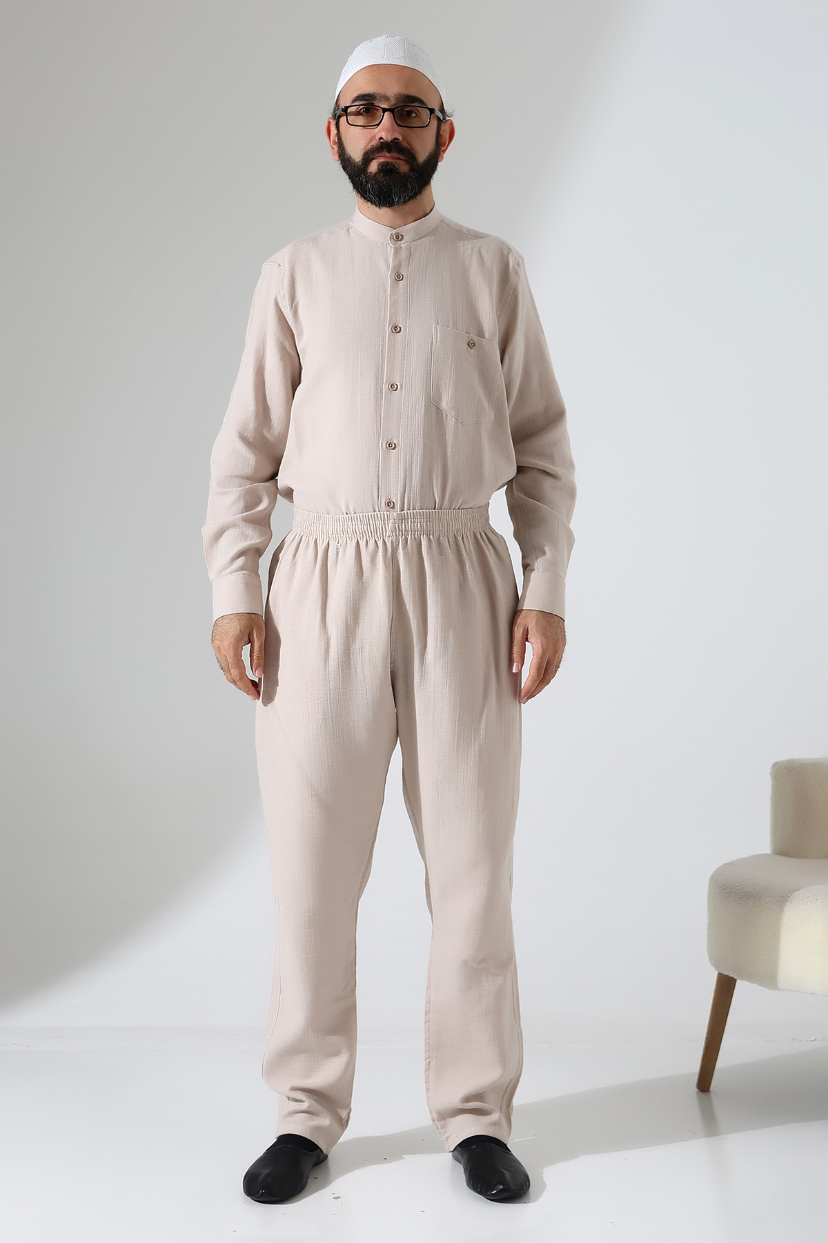 Erkek Lastikli Bel Cepli Hac Umre Müslin Pantolon - Bej (ANS) Erkek Lastikli Bel Cepli Hac Umre Müslin Pantolon - Bej (ANS) ihvn6357 5XL