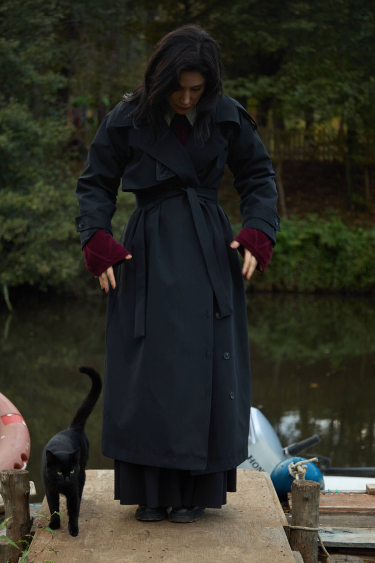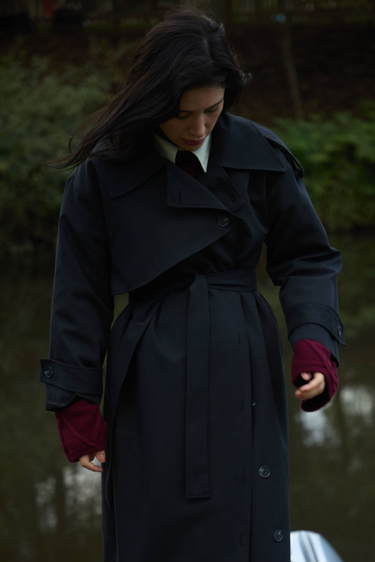 Asimetrik Düşük Kol Trençkot Siyah Asimetrik Düşük Kol Trençkot Siyah 8251 XL