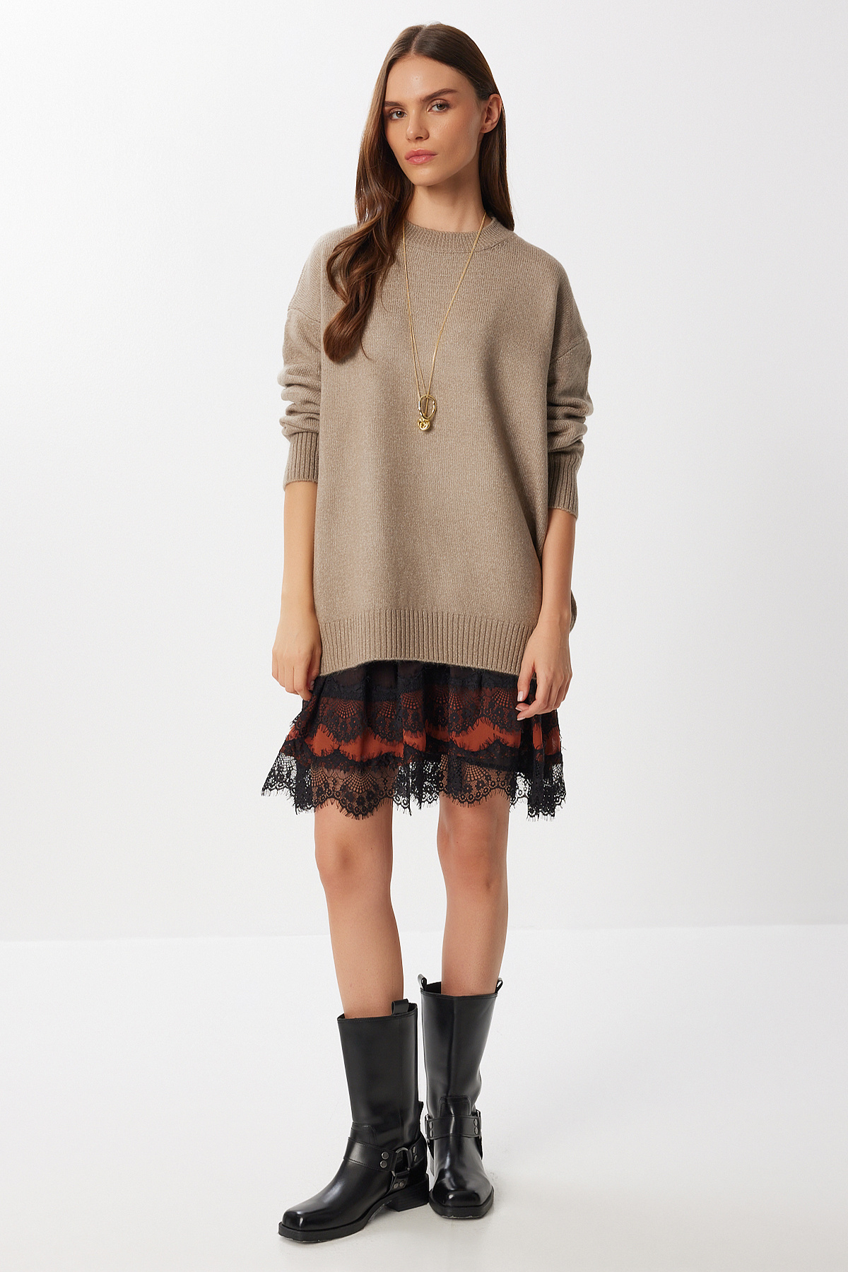 Oversize Yün Karışımlı Kazak LCI0040 VİZON Oversize Yün Karışımlı Kazak LCI0040 VİZON تک سایز