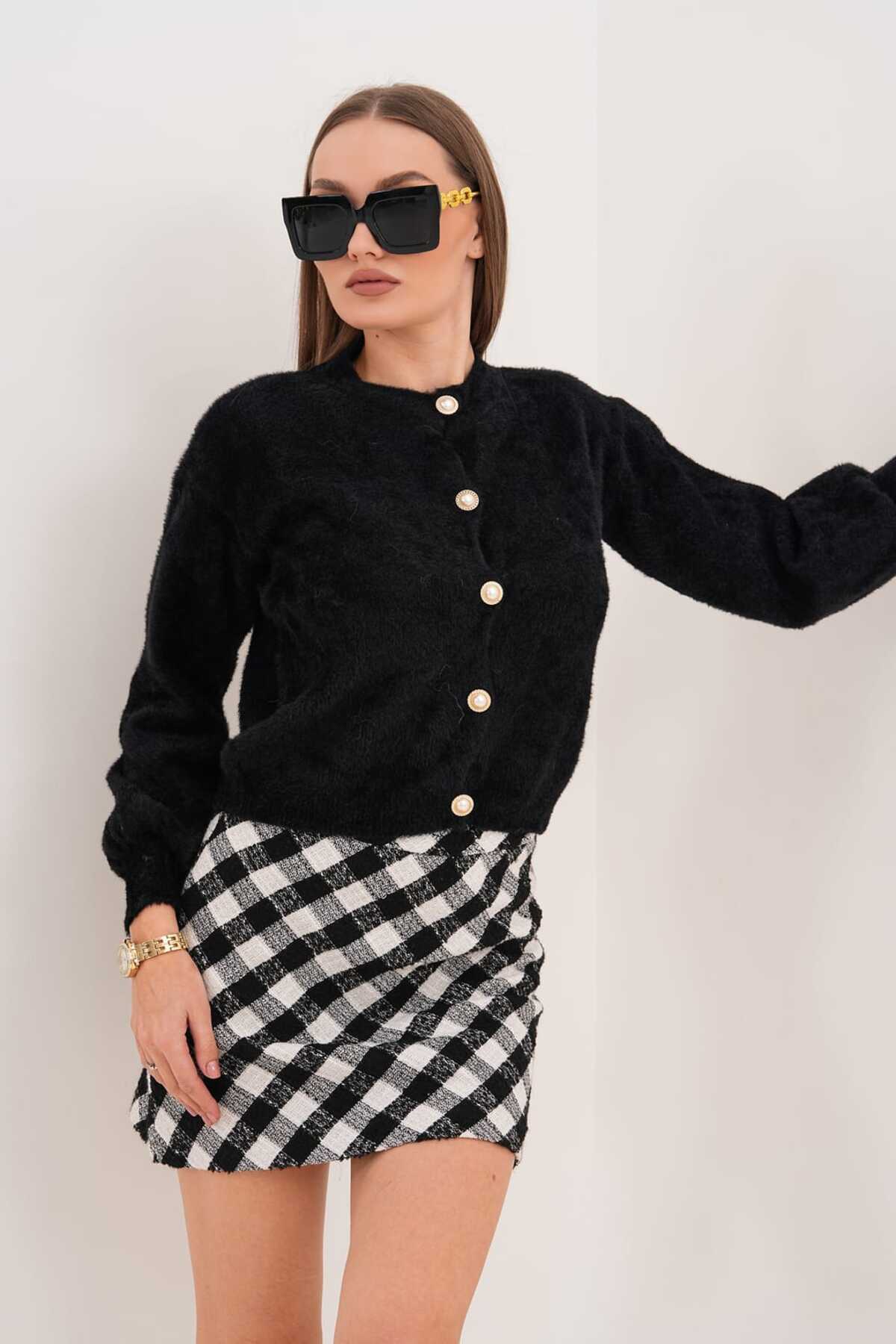 İnci Düğmeli Yumuşak Dokulu Triko Hırka İnci Düğmeli Yumuşak Dokulu Triko Hırka LRS344-16-001 Standart