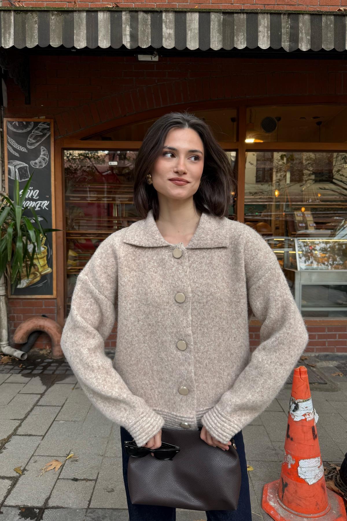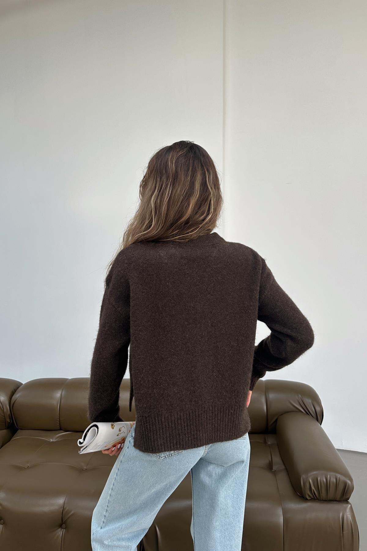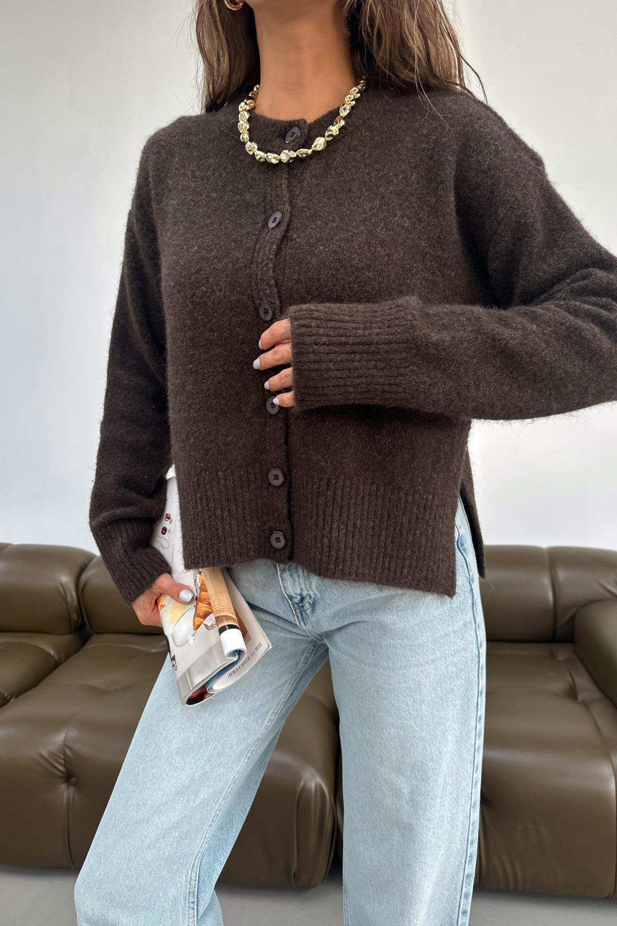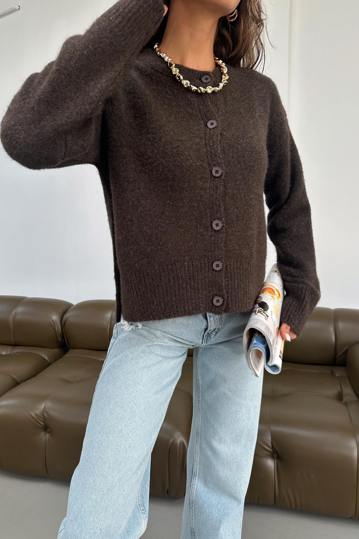 Düğmeli Hırka Kahve Düğmeli Hırka Kahve TX9AD2483639576 Standart