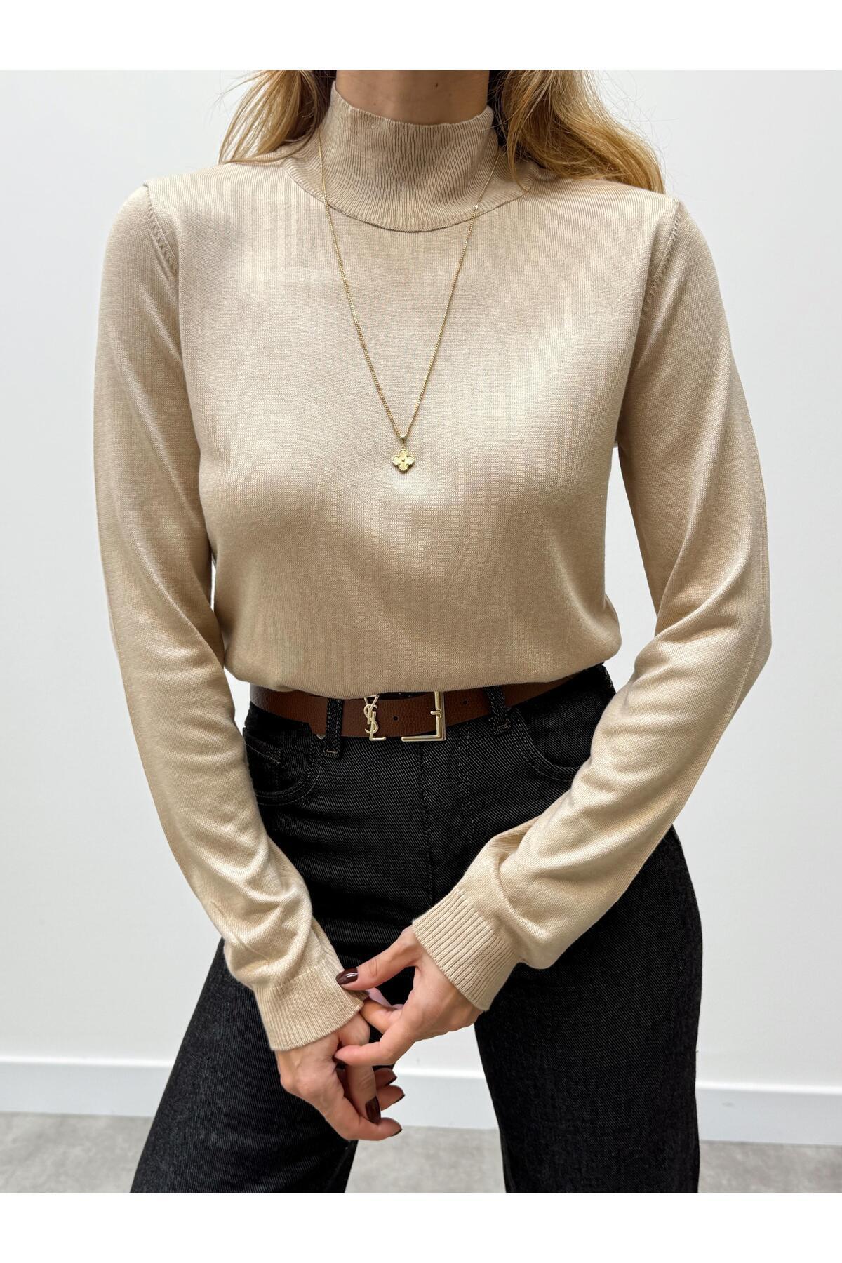 Kadın Balıkçı Yaka Bej Kazak Kadın Balıkçı Yaka Bej Kazak 266770 XL