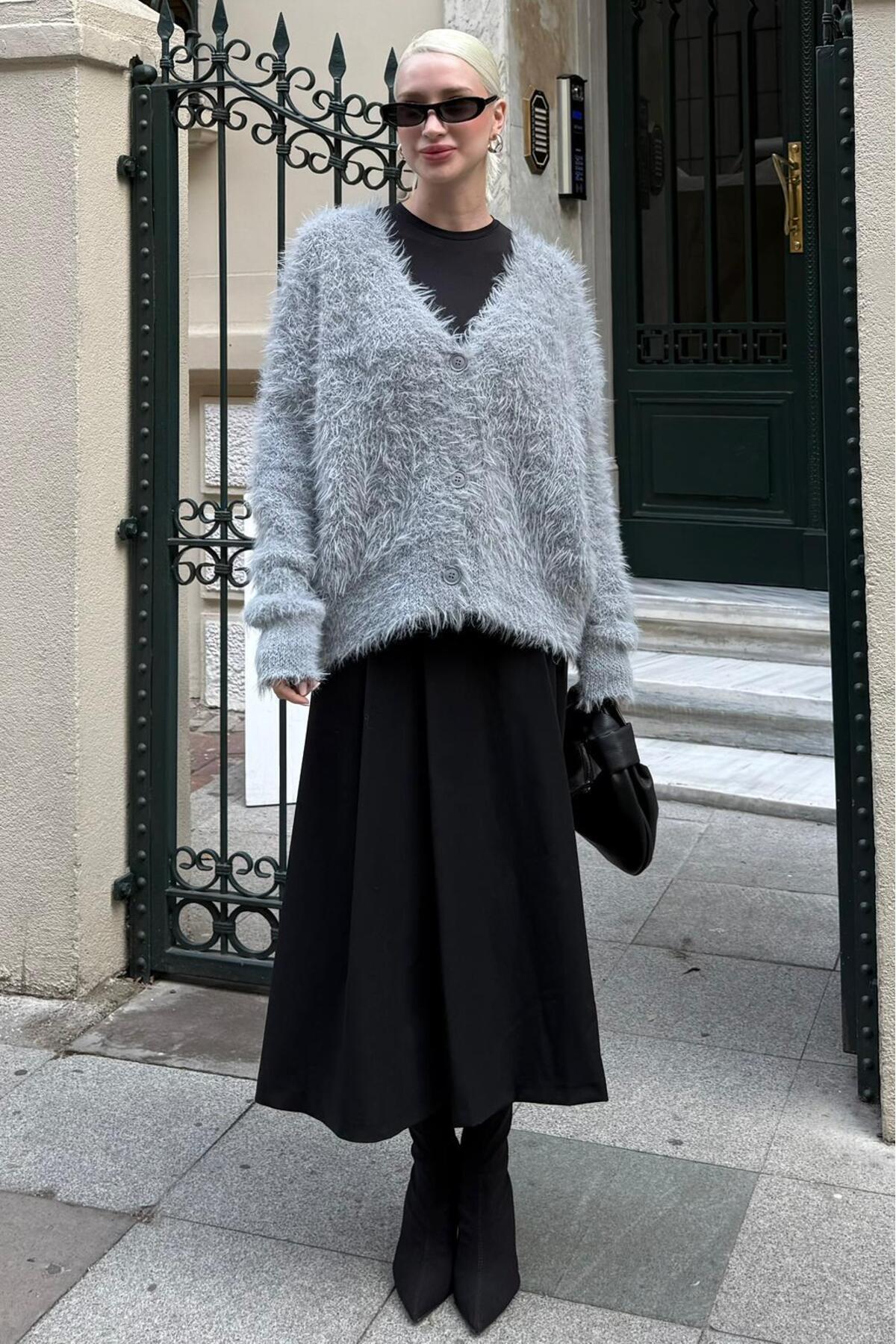 Gri Sakallı Düğmeli Kadın Hırka MG2570 Gri Sakallı Düğmeli Kadın Hırka MG2570 Standart