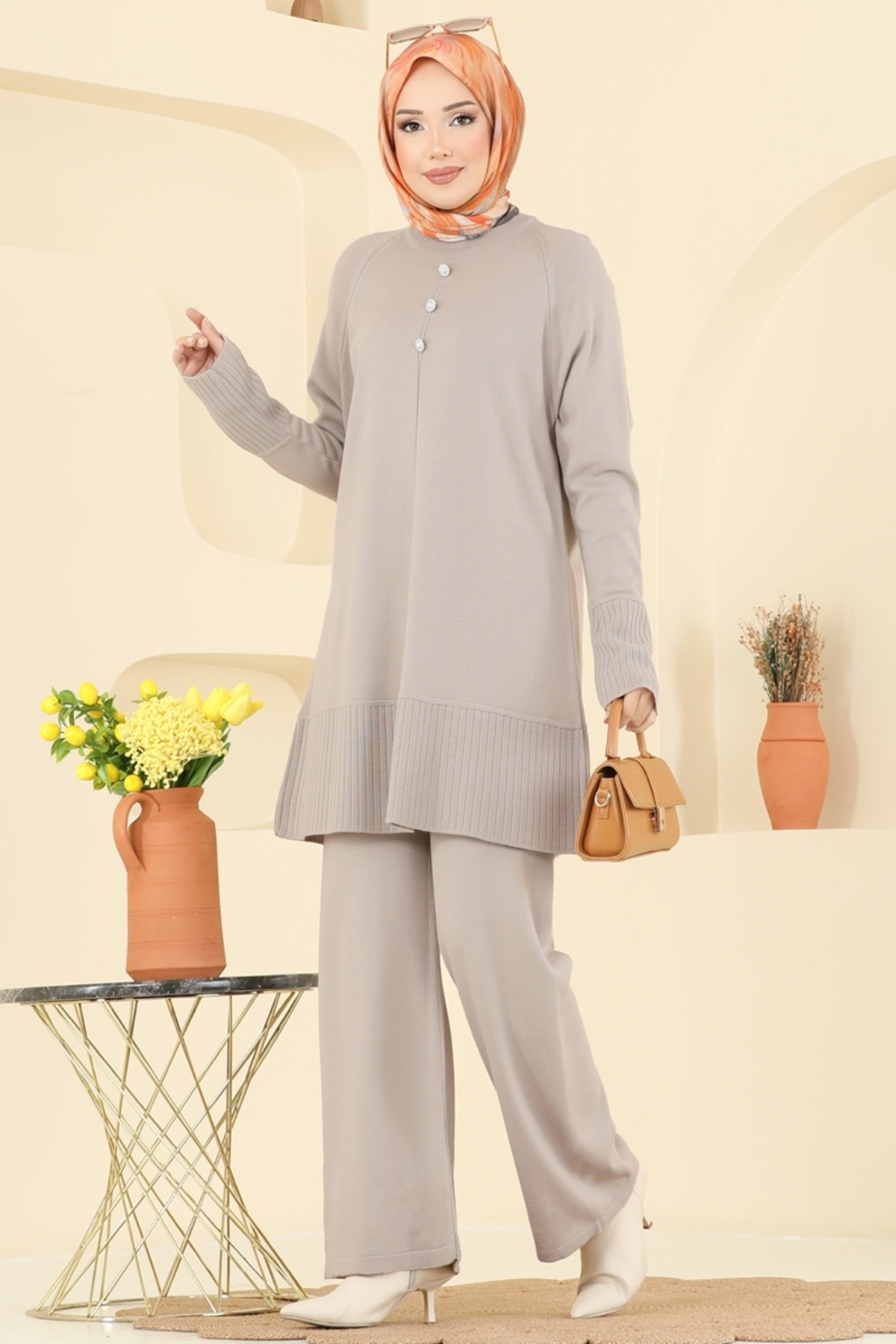 Aksesuar Düğmeli Triko Takım 2723AYD574-MS Laci Aksesuar Düğmeli Triko Takım 2723AYD574-MS Laci تک سایز