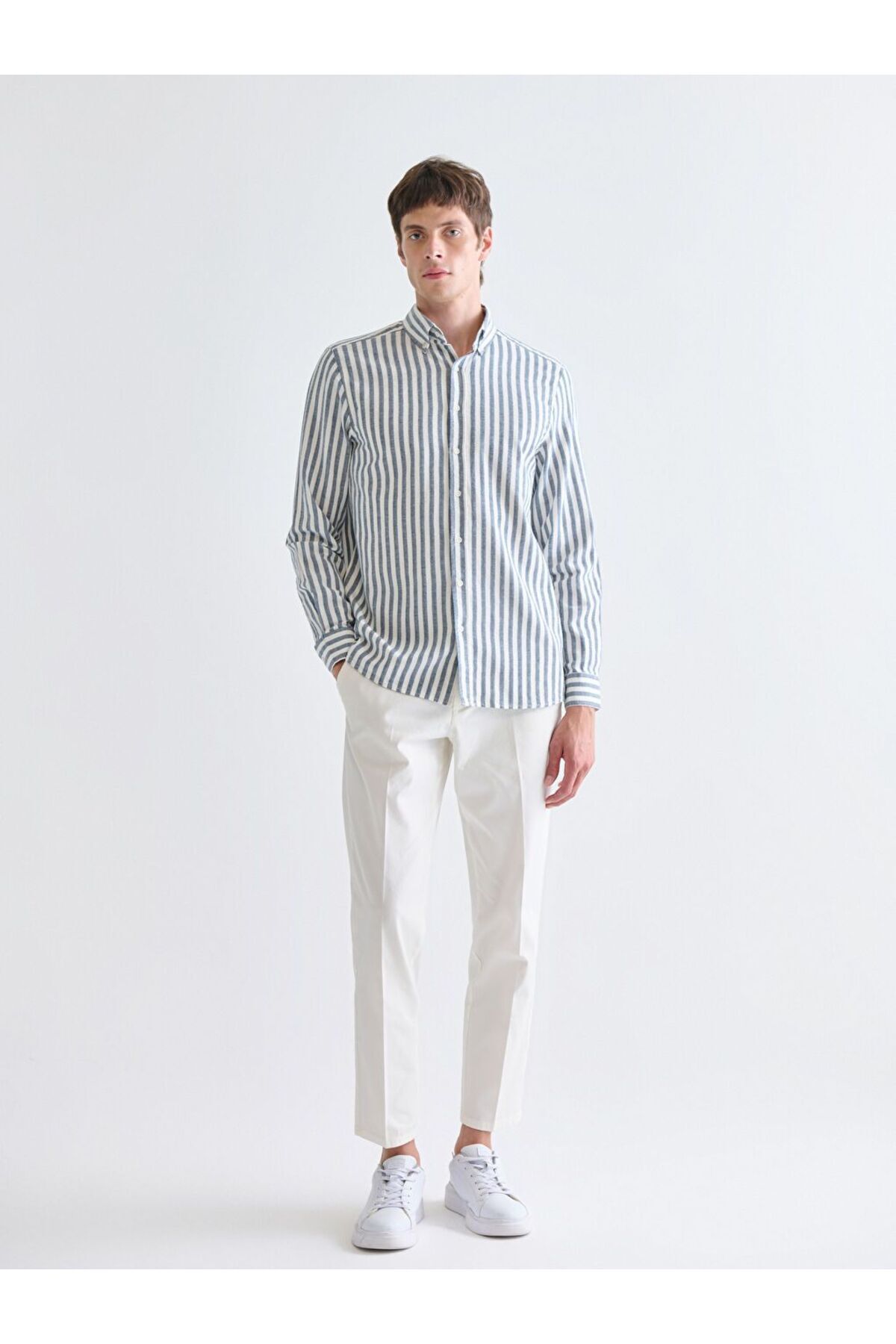 SOUTHBLUE Regular Fit Çizgili Keten Görünümlü Erkek Gömlek SOUTHBLUE Regular Fit Çizgili Keten Görünümlü Erkek Gömlek W5JG76Z8 3XL