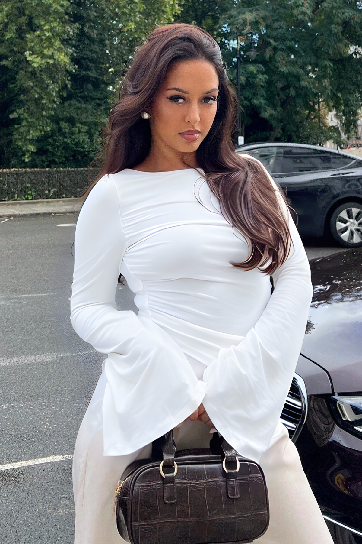 Kadın Likralı Drapeli Uzun İspanyol Kollu Crop Bluz Kadın Likralı Drapeli Uzun İspanyol Kollu Crop Bluz KDNİSPCR010 S