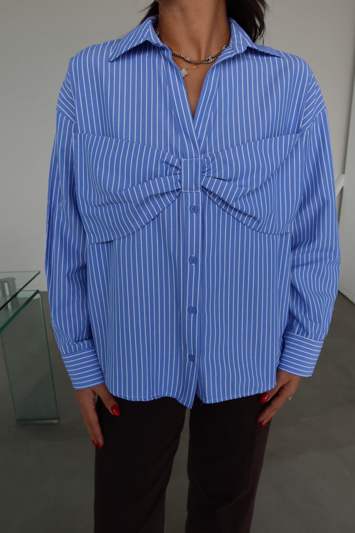 Çizgili Fiyonk Detaylı Gömlek Çizgili Fiyonk Detaylı Gömlek 26koz0220 L