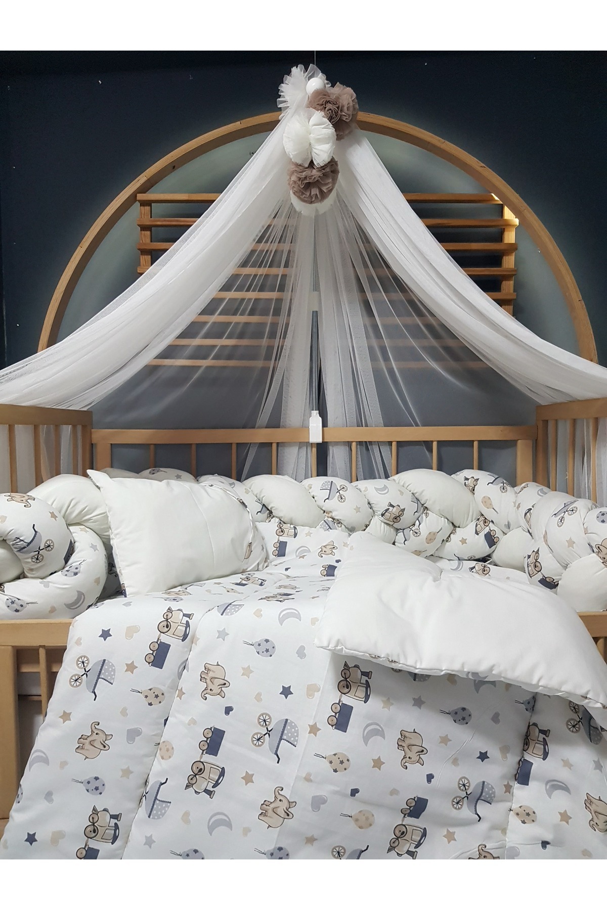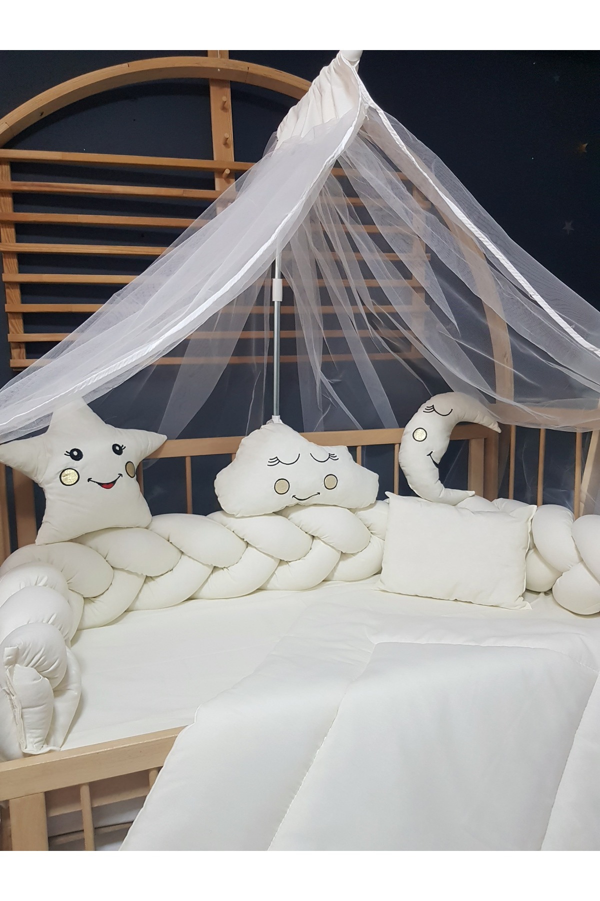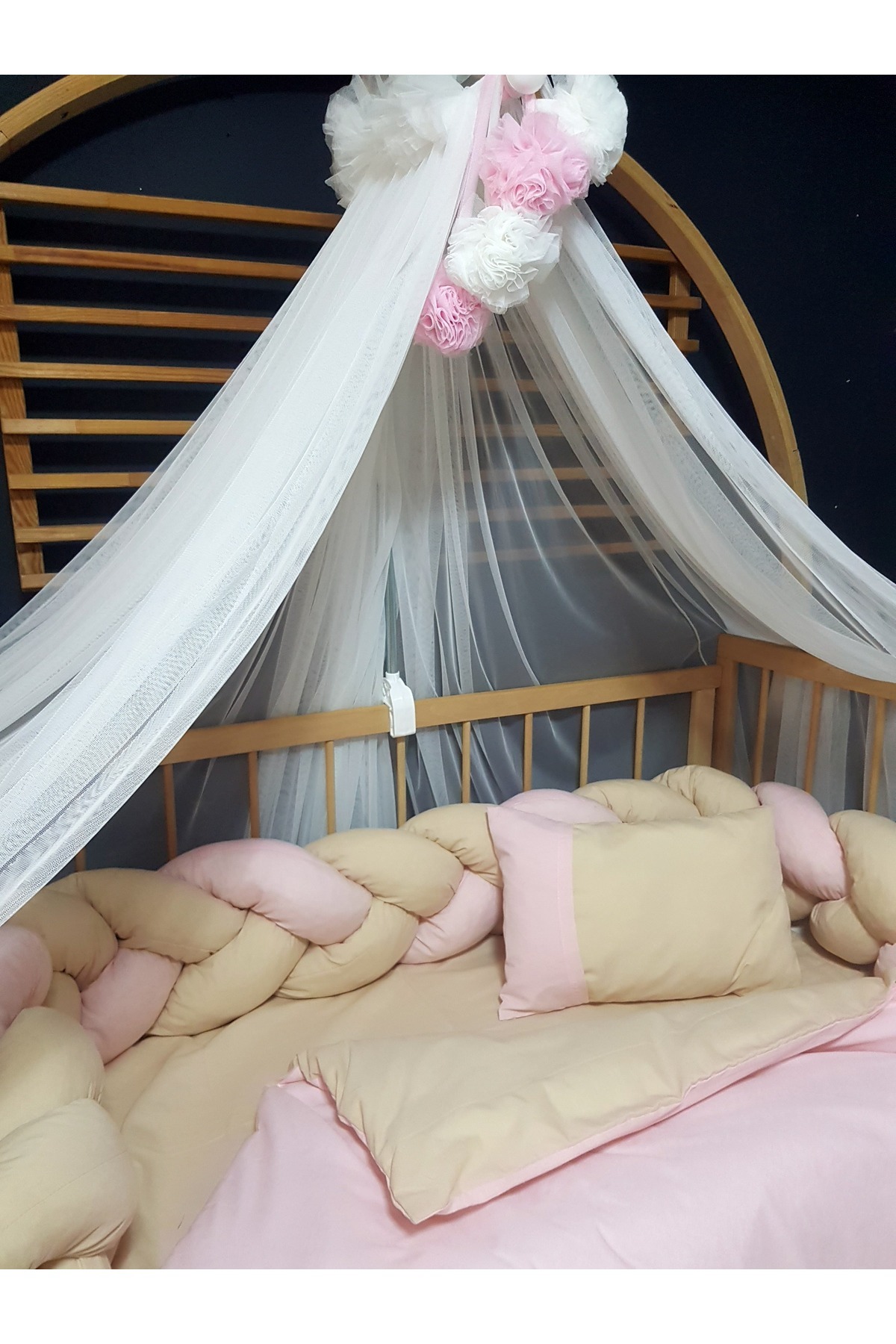 Kız Bebek Uyku Seti Örgü Korumalı 60x120 cm - Ponponlu Cibinlik ve Aparat Dahil Kız Bebek Uyku Seti Örgü Korumalı 60x120 cm - Ponponlu Cibinlik ve Aparat Dahil ÖUSR2. تک سایز