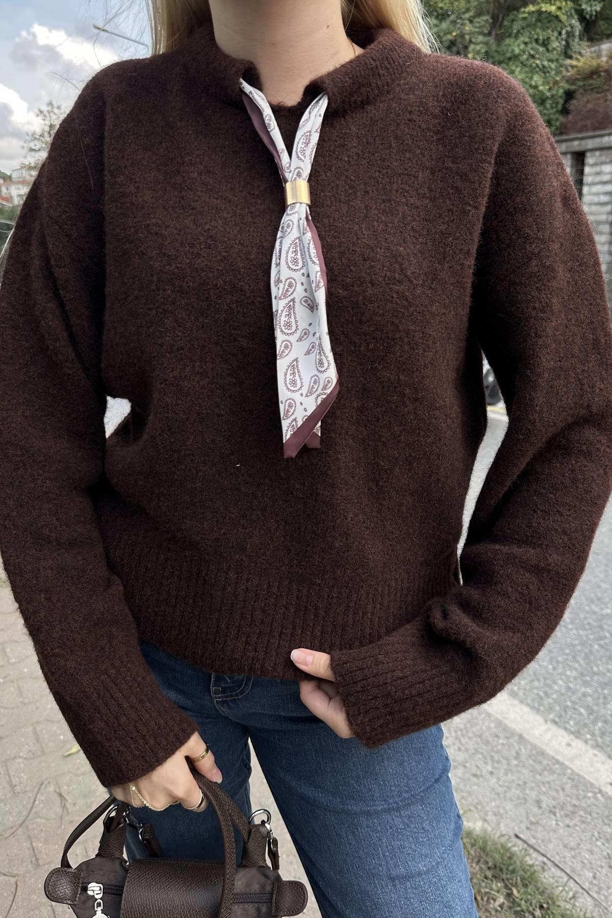 BİSİKLET YAKA FULAR DETAYLI TRIKO KAZAK BİSİKLET YAKA FULAR DETAYLI TRIKO KAZAK PML2535 Standart